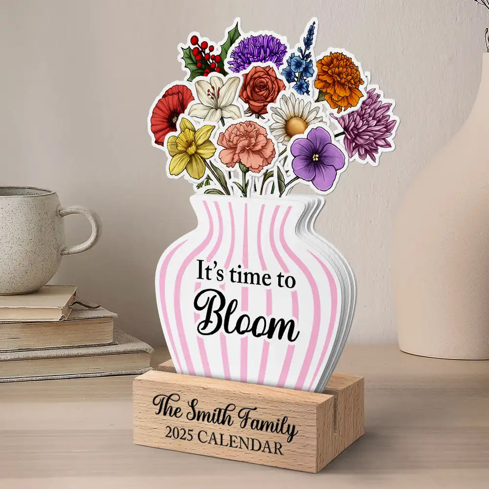 This happy and delightful calendar features birth month flowers, making it an appreciated and personalized gift for anyone you cherish. The custom shaped cardstock and sturdy wooden stand ensure it stands out as a charming addition to any desk or table. Its vibrant design and thoughtful layout allow recipients to enjoy a year full of love and beautiful memories.
