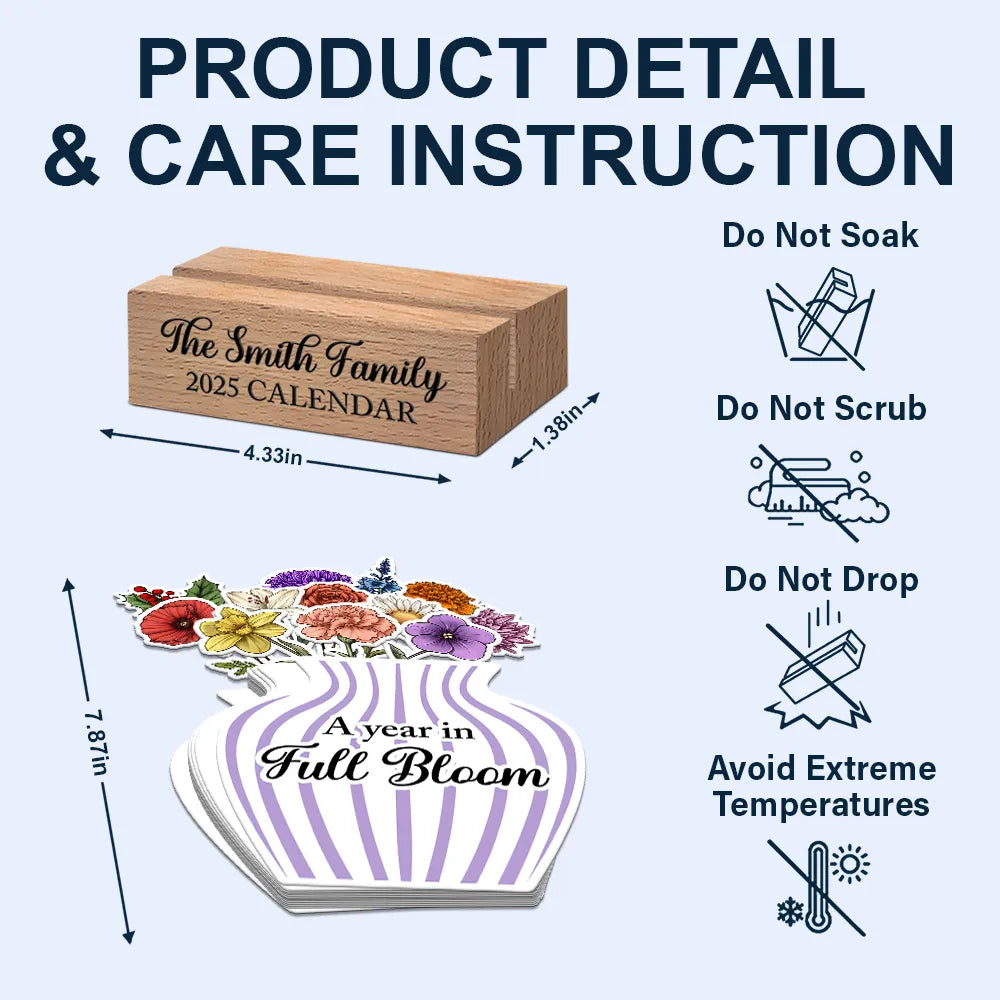 Celebrate life's special moments with the 2025 Calendar With Birth Month Flowers - Personalized Custom Shaped Cardstock With Wooden Stand. A unique and meaningful gift, this calendar is perfect for couples, wives, girlfriends, grandmas, women, mothers, parents, grandparents, daughters, sisters, family, and besties. It's a wonderful choice for Mother's Day, Father's Day, Thanksgiving, Christmas, birthdays, and anniversaries.