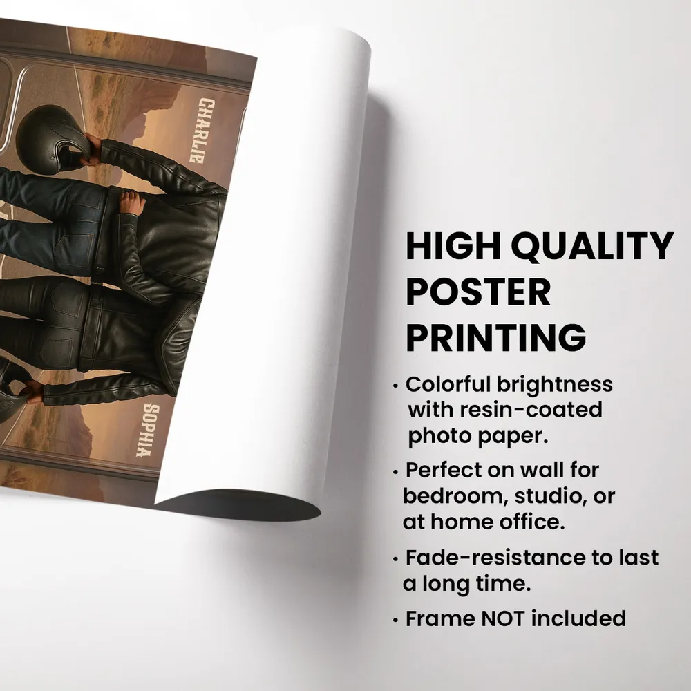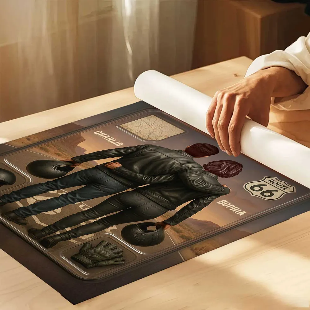 3D Effect Custom Figure Couple Bikers Riding Partners For Life Personalized Poster| Heartfelt Gift For Bikers