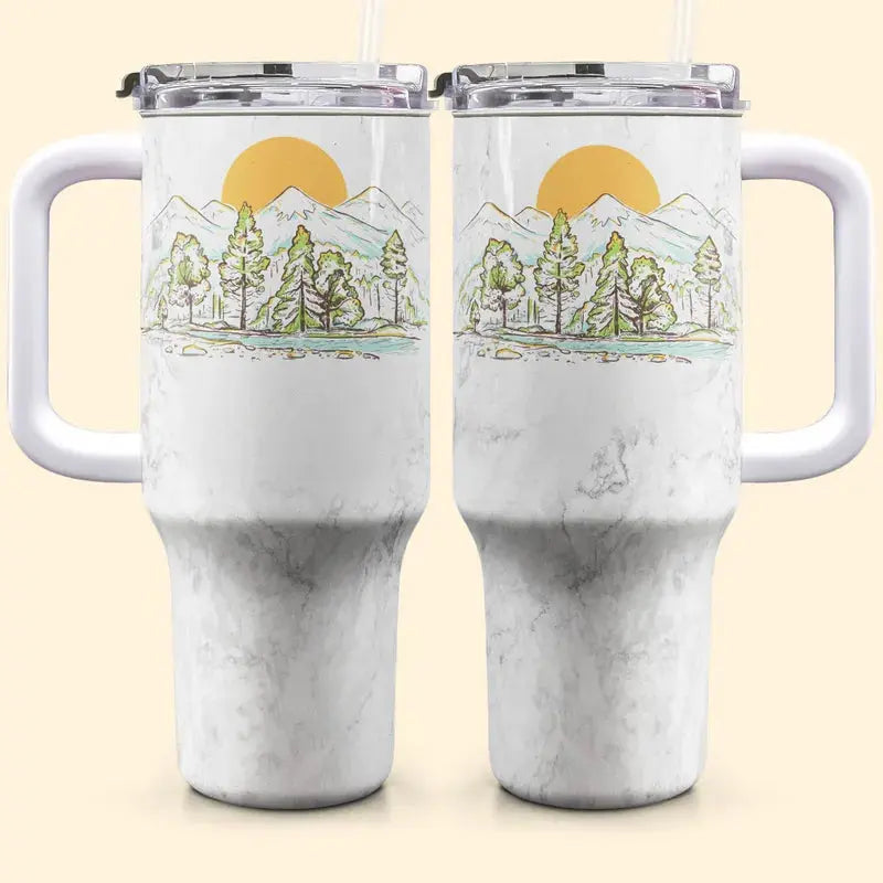 40oz Tumbler Camping Lovers - Campfire And Coffee Cup - Personalized Tumbler (BU)