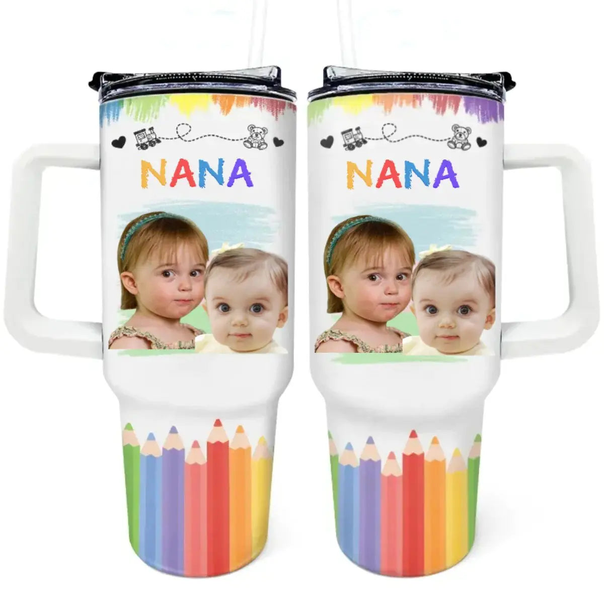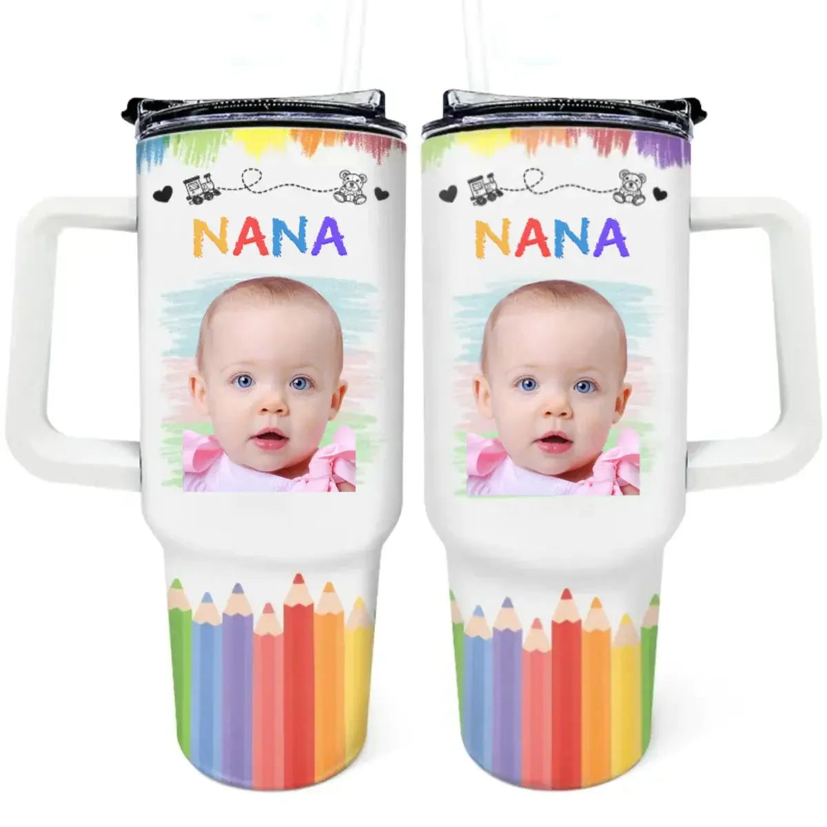 40oz Tumbler Kids - Custom Photo Nana Papa Mommy Daddy - Personalized Tumbler