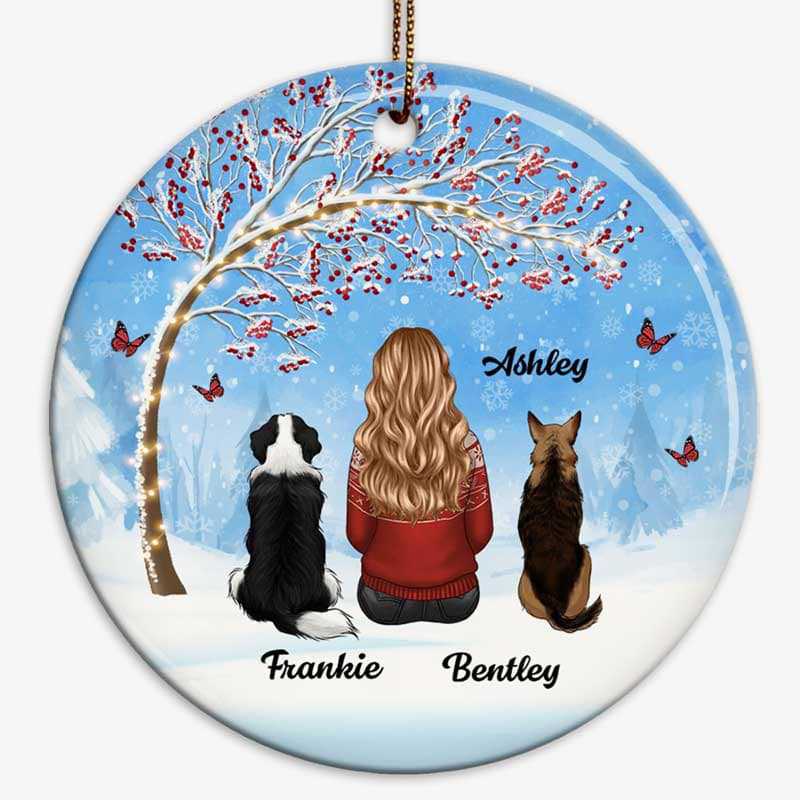 A Girl Who Loves Her Dogs Berry Tree Personalized Circle Ornament