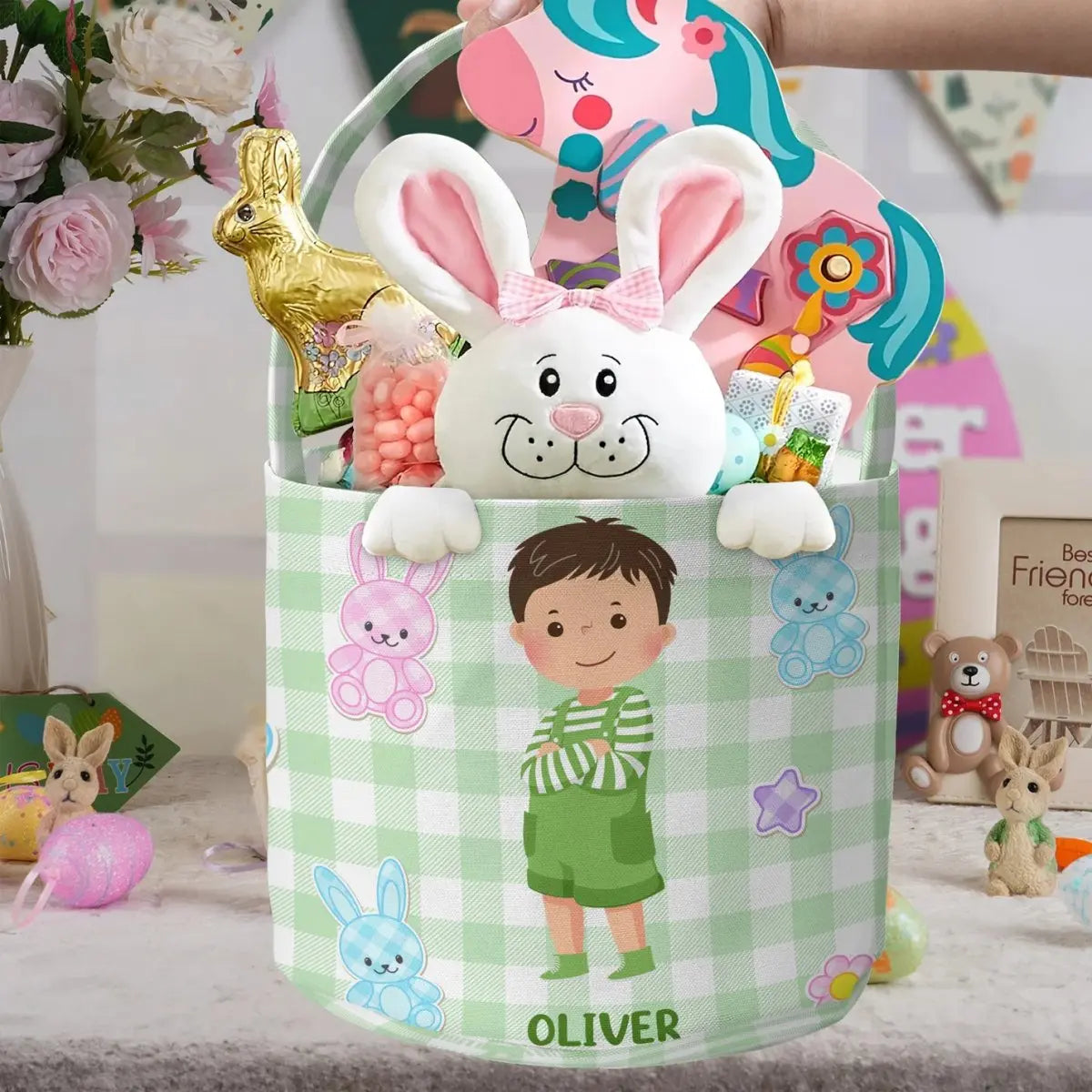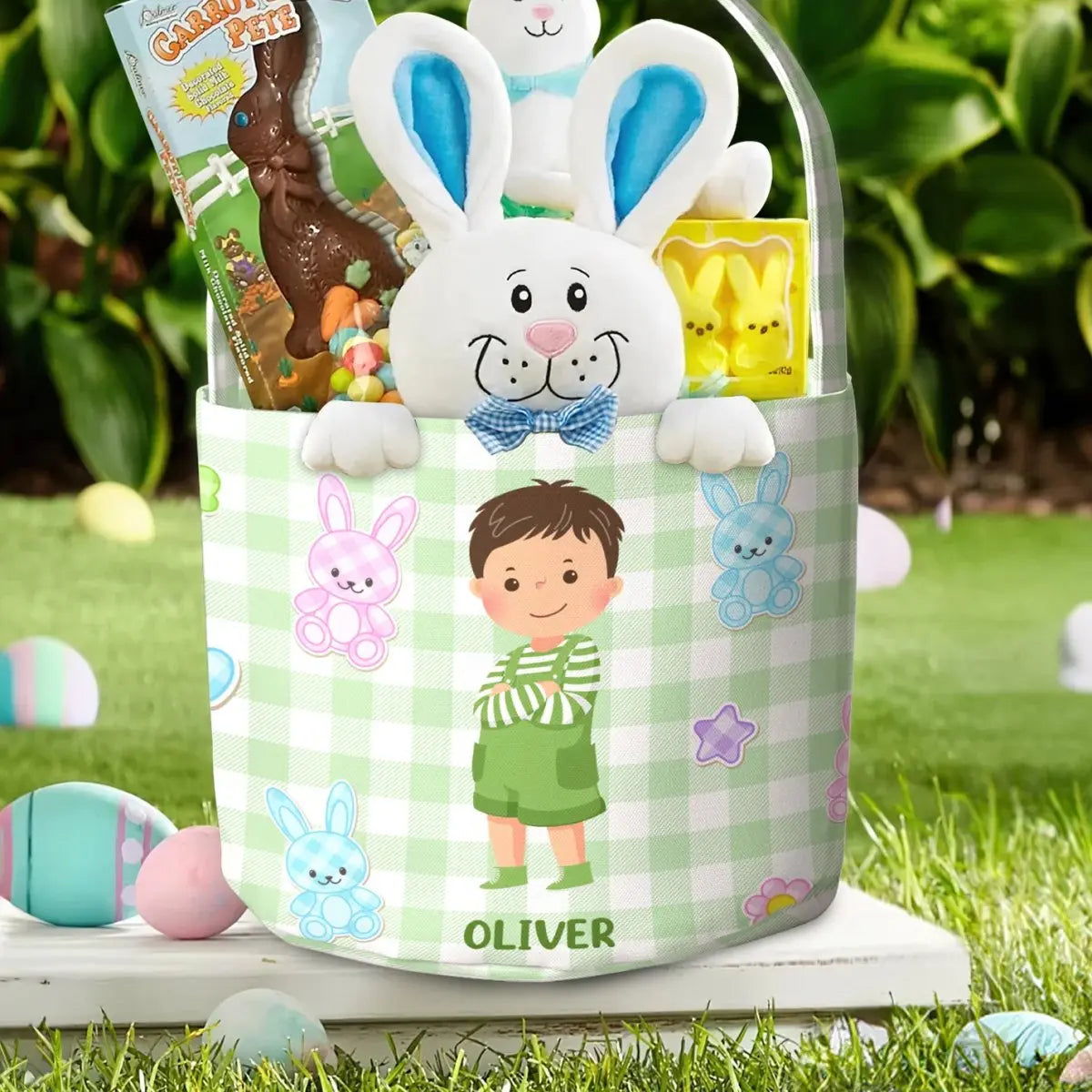 Kids - Adorable Kids Easter Basket With Eggs And Bunny - Personalized Easter Basket (AB)