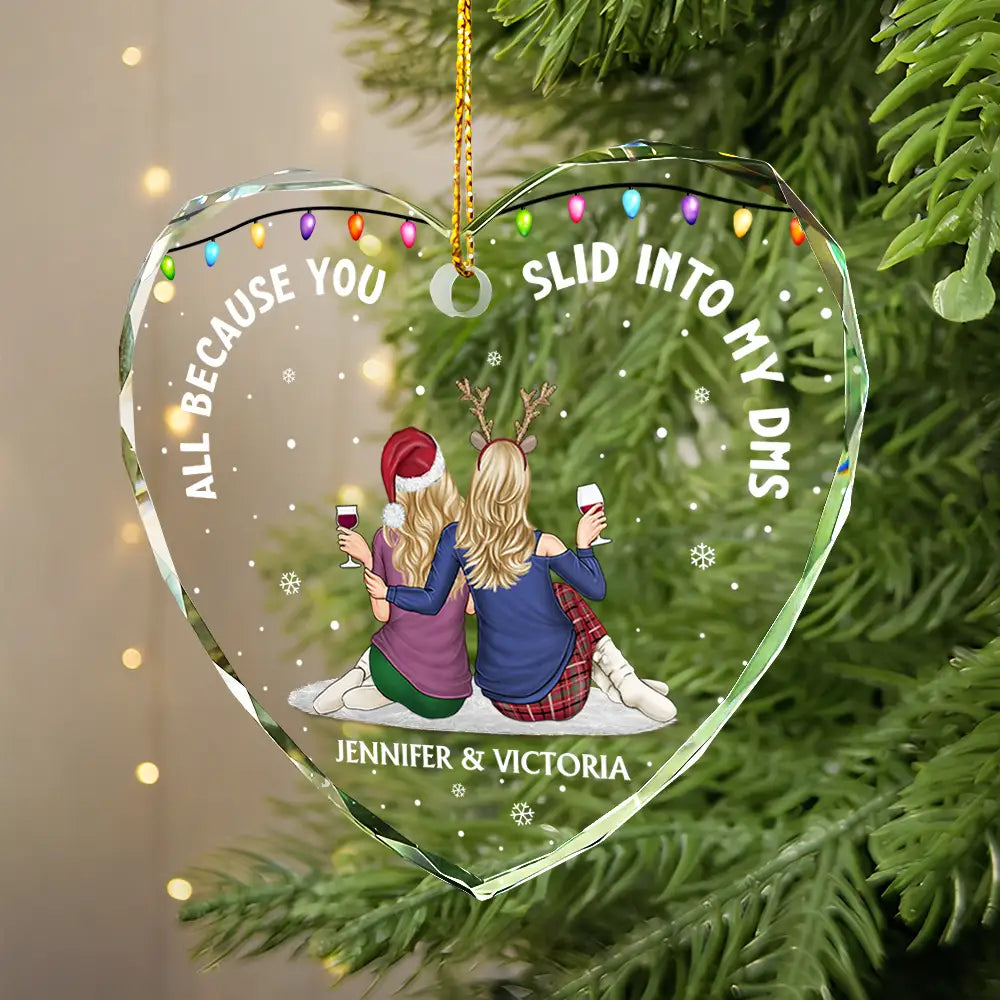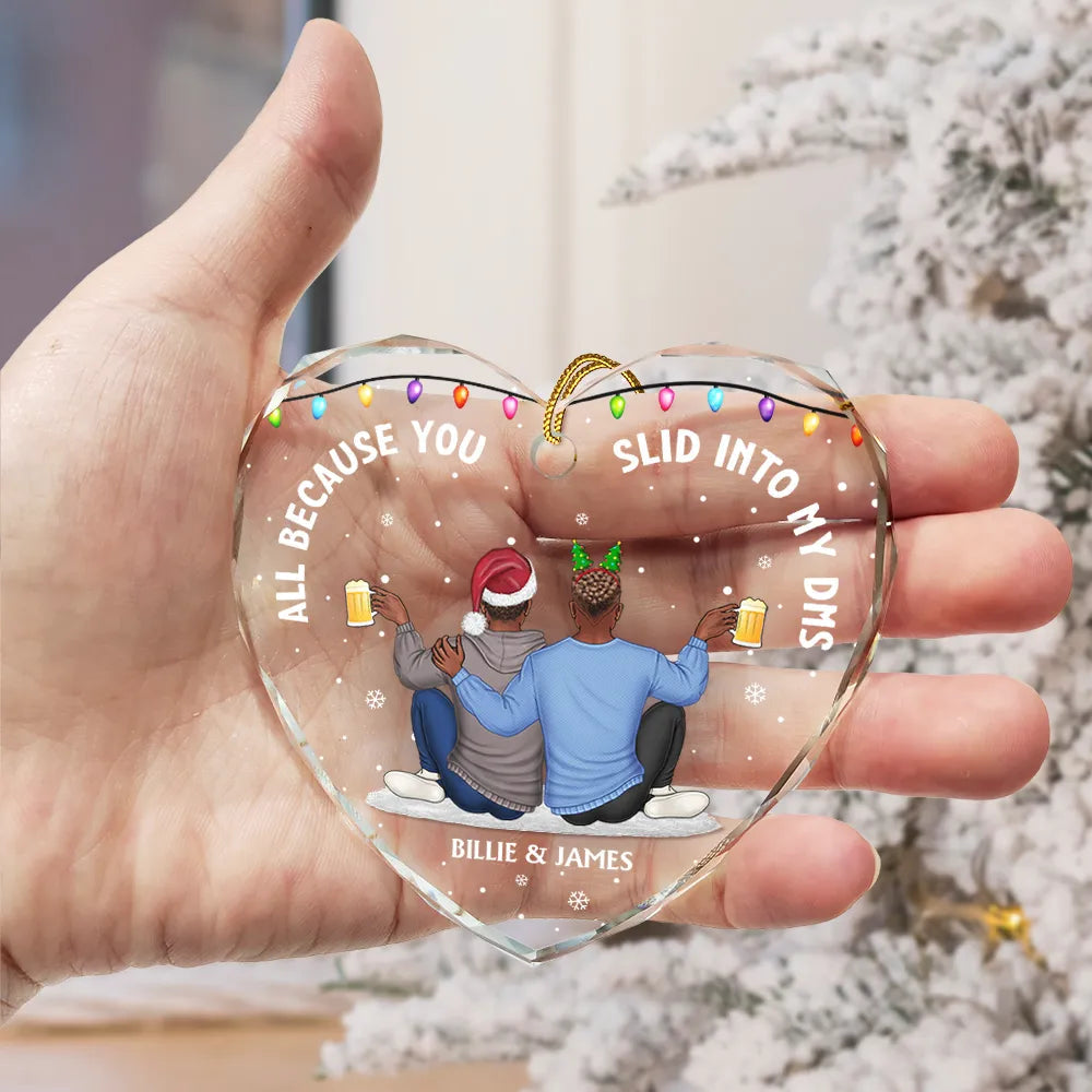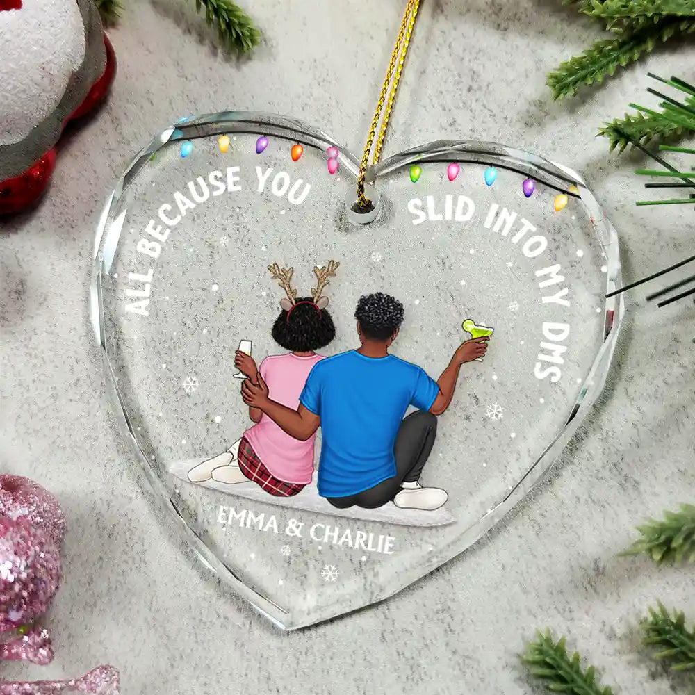 All Because You Slid Into My DMs Christmas Couple - Personalized Heart Shaped Acylic Ornament