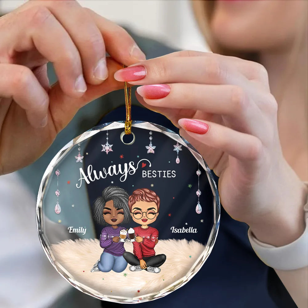 Always Besties Sisters Chibi - Personalized Circle Acrylic Ornament