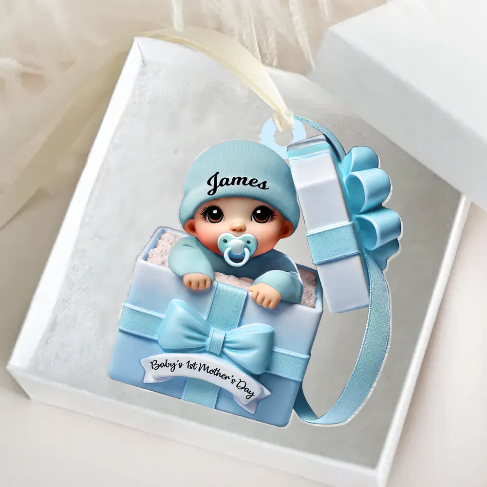 Baby Inside Gift Box 3D Effect Personalized Acrylic Ornament, Lovely Keepsake to Celebrate Baby's First Mother's Day, Gift for new moms