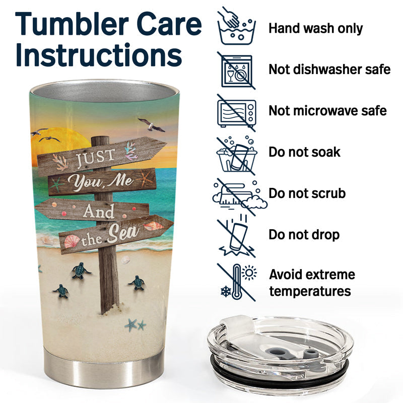 Beach Couple Just You Me & The Sea - Personalized Custom Tumbler