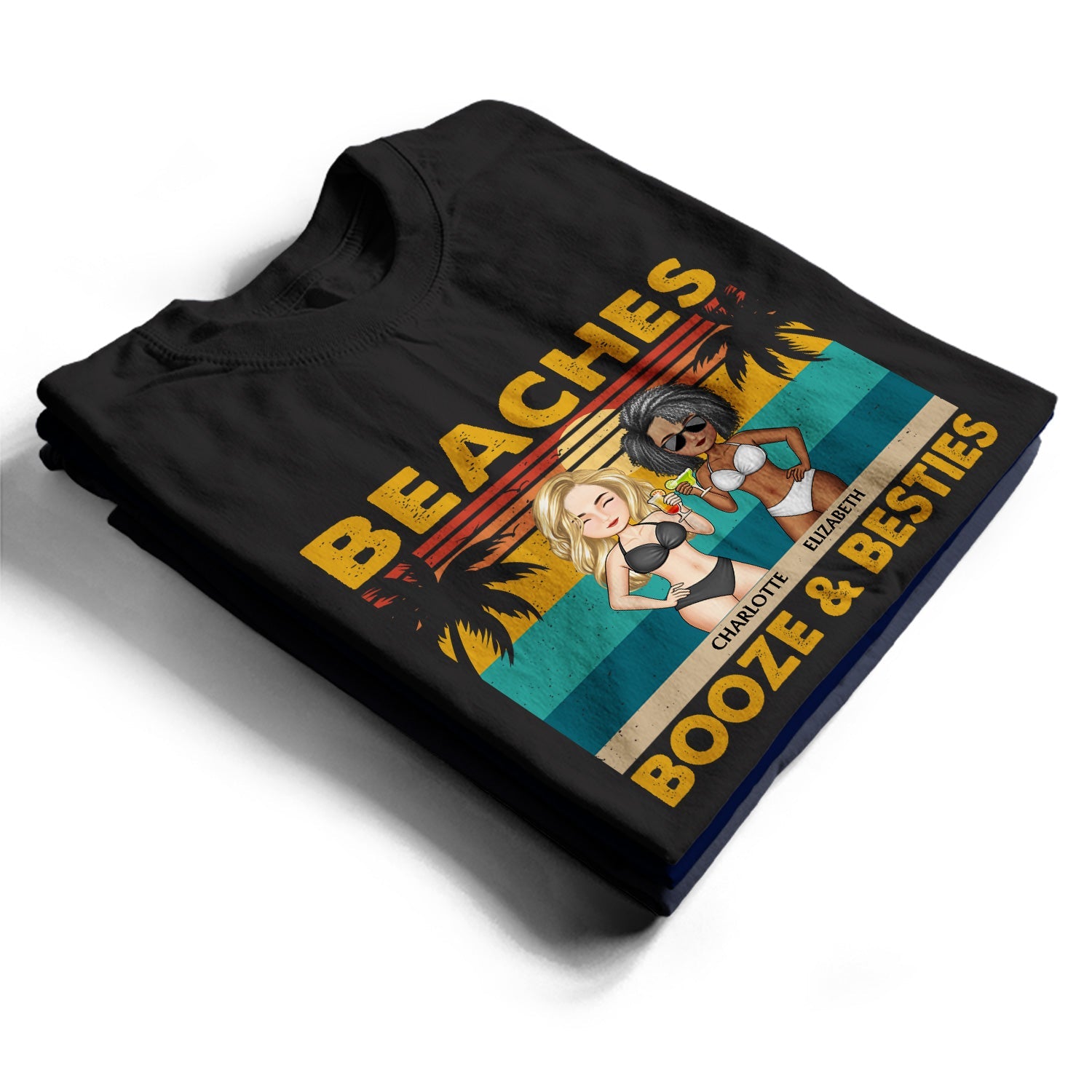 Beaches Booze & Besties Vintage - Vacation, Anniversary, Birthday Gift For Besties, Best Friends - Personalized Custom T Shirt