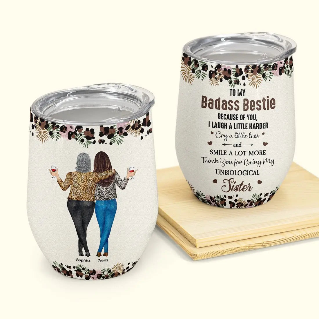 Besties -Because Of You I Laugh A Little Harder  - Personalized Wine Tumbler Wine Tumbler The Next Custom Gift