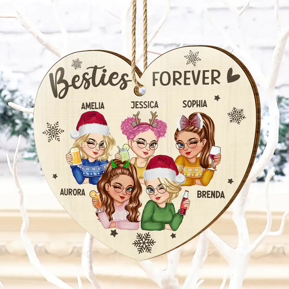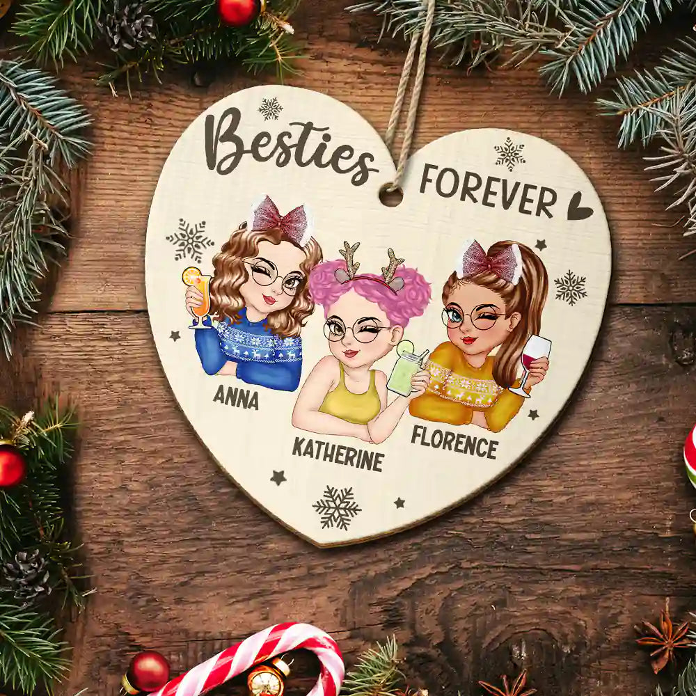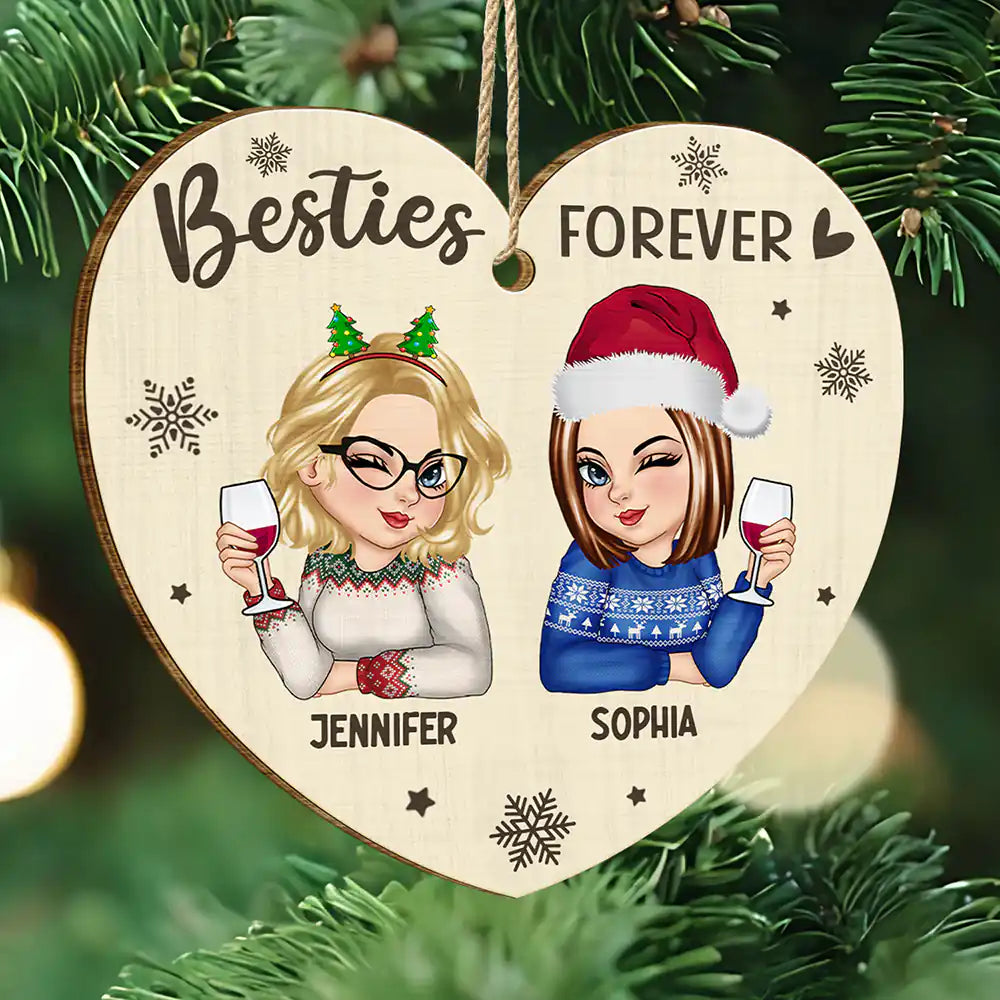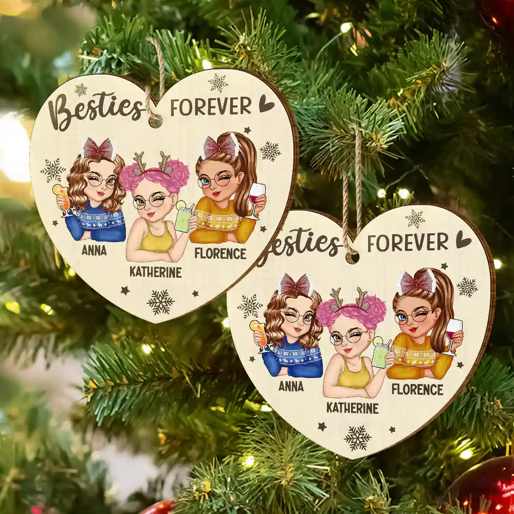 Besties Forever Christmas - Personalized Custom Shaped Wooden Ornament