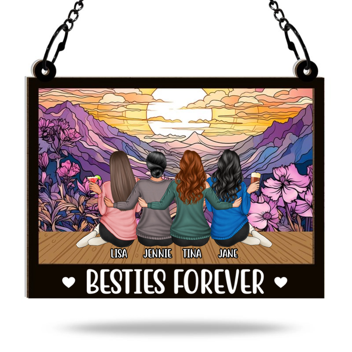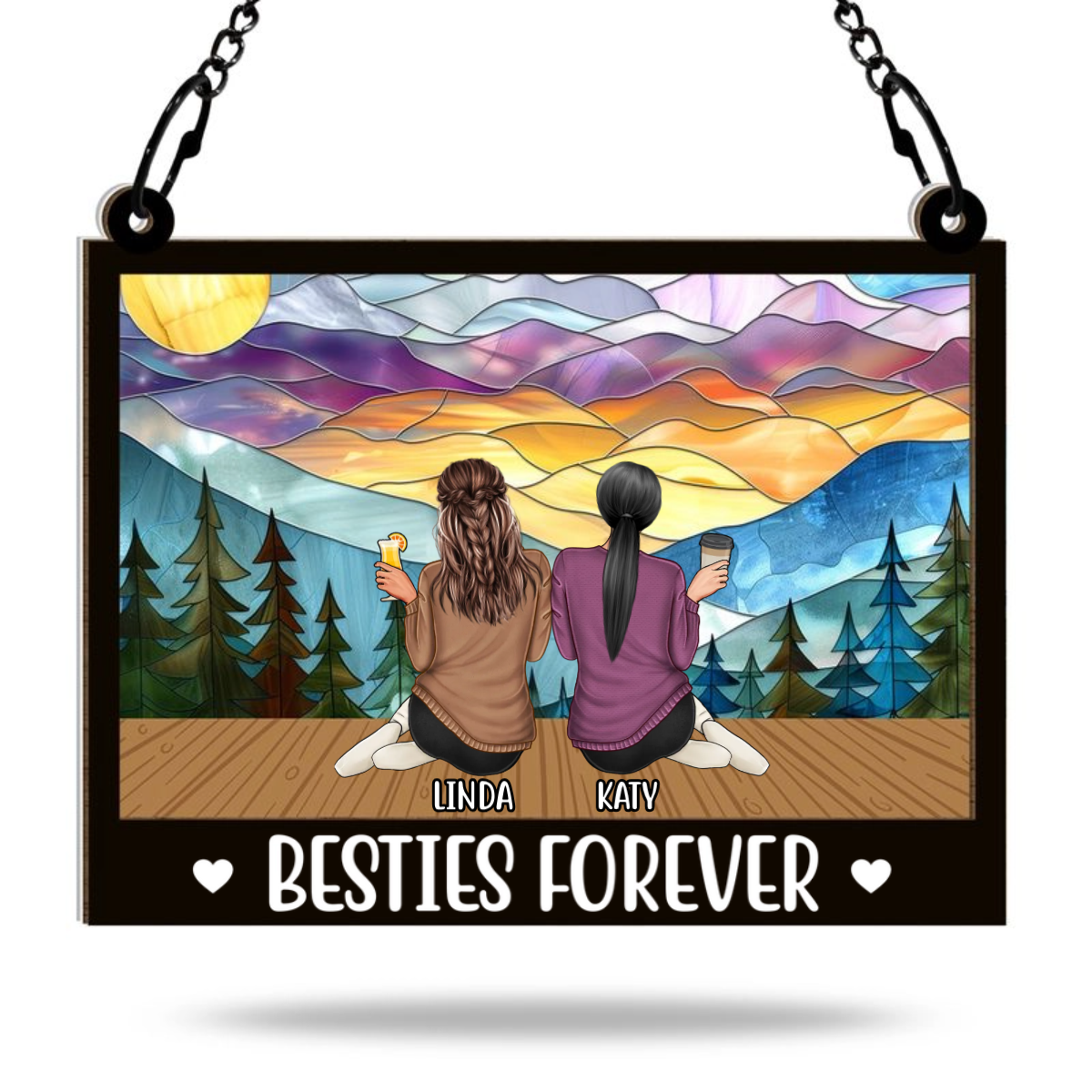 Besties Forever - Personalized Acrylic Window Suncatcher Ornament - Gift For Besties, Sisters