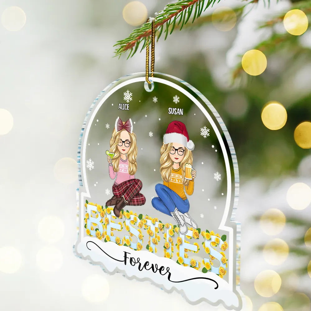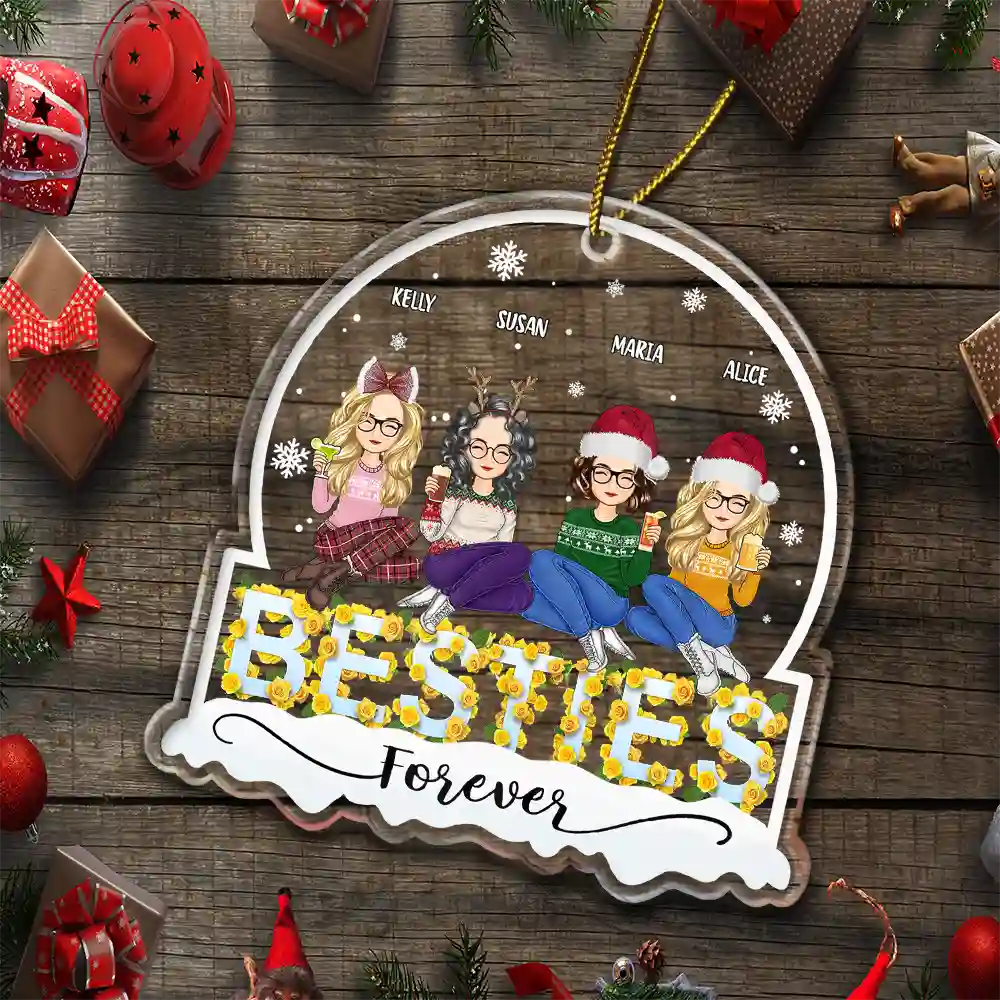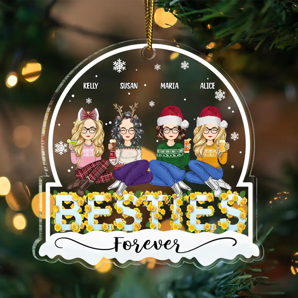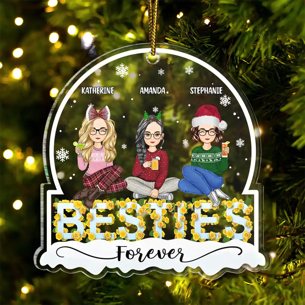 Besties Forever Yellow Rose Christmas - Personalized Custom Shaped Acrylic Ornament