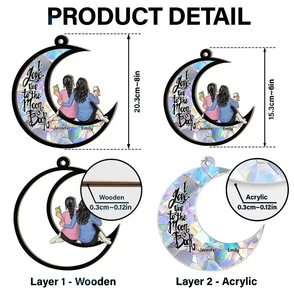 Besties I Love You To The Moon & Back - Personalized Window Hanging Suncatcher Ornament Hanging Suncatcher Ornament The Next Custom Gift