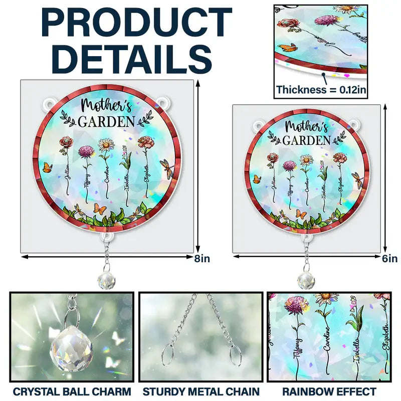 Birth Flower Grandma's Garden - Personalized Rainbow Suncatcher With Crystal Ball Prism