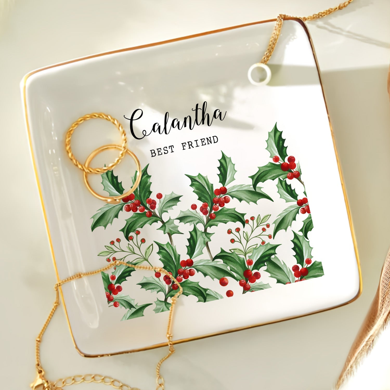 The Ring Dish with our beautiful artwork and personalization can be placed on a dresser or nightstand to keep all your treasured rings/bracelets/earrings and any other small accessories safe! Personalized with everything you need, surprise the loved ones in your life with the thoughtful gift on any occasions such as Birthday, Anniversary, Valentine, Mother's Day, Father's Day, Christmas, etc.