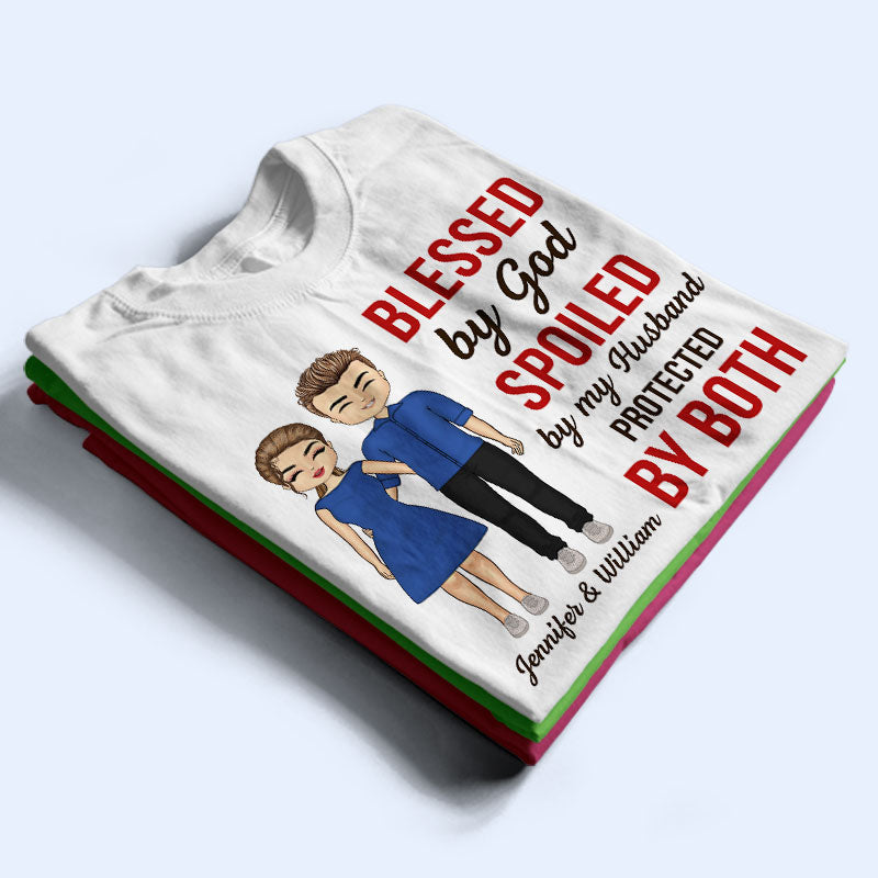 Blessed By God Spoiled By My Husband - Couple Gift - Personalized Custom T Shirt