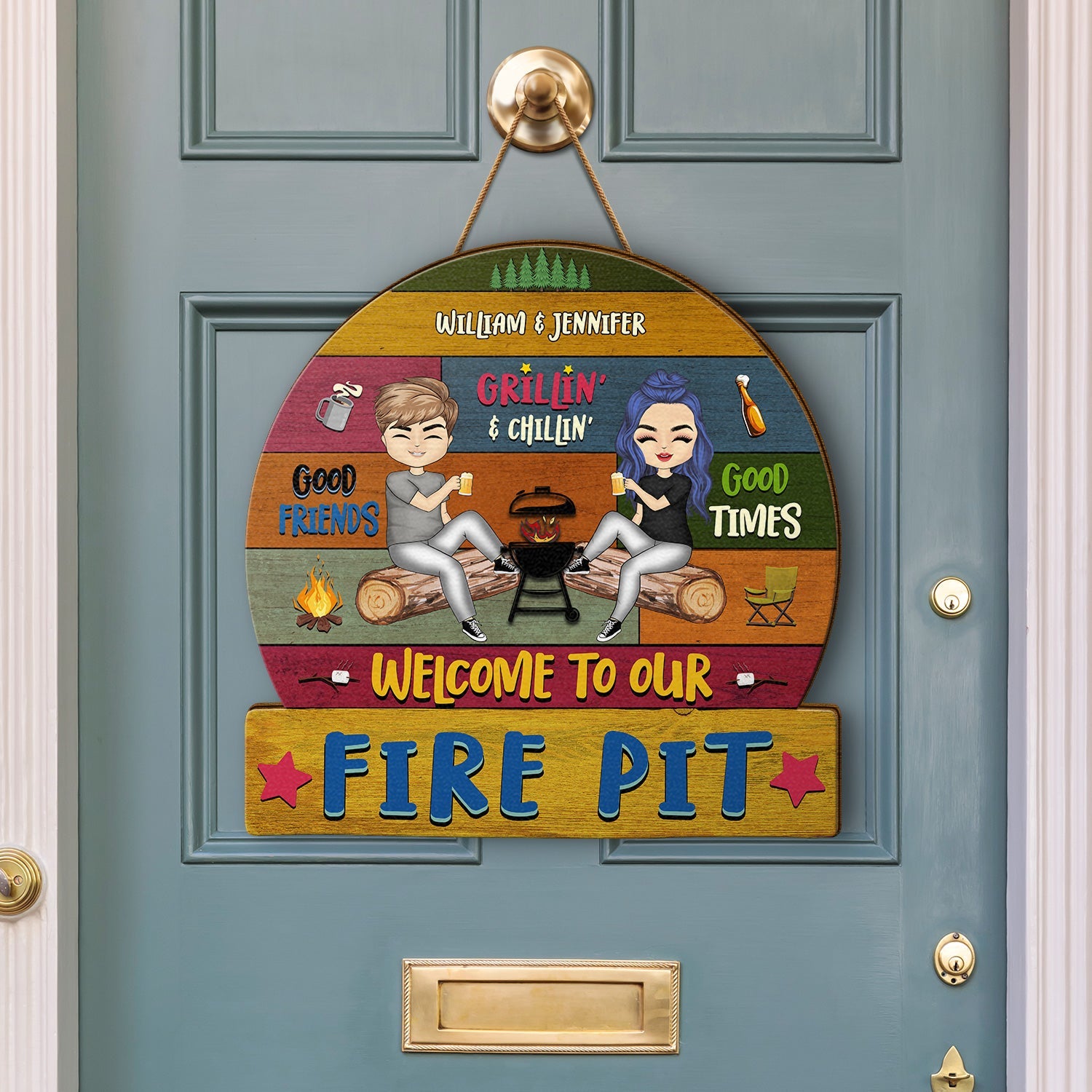 Camping Couple Welcome To Our Campsite - Gift For Camping Couple - Personalized Custom Shaped Wood Sign