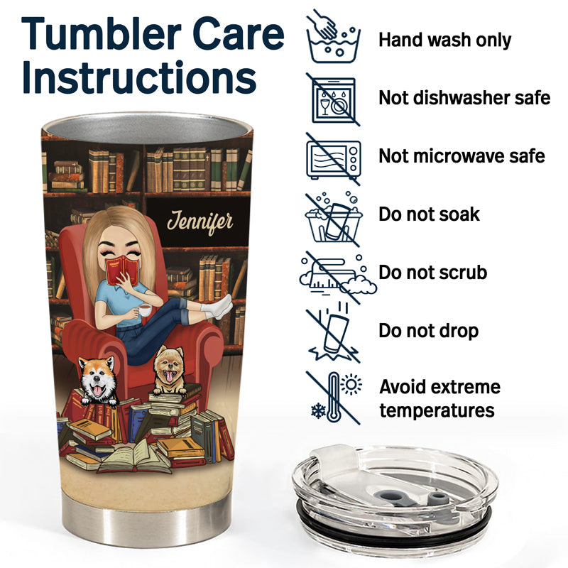 Chibi Girl A Book In My Hand & Dogs By My Side - Personalized Custom Tumbler