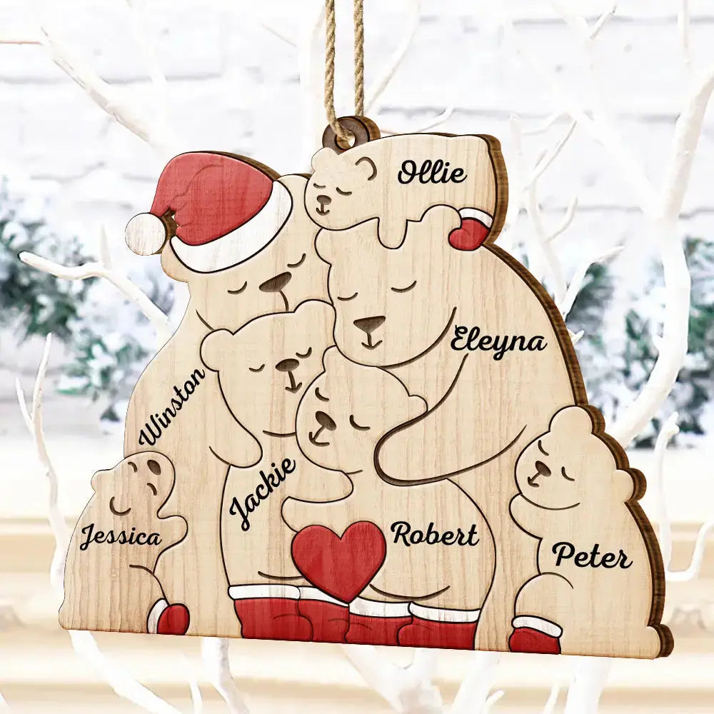 Christmas Bear Family - Personalized Custom Shaped Wooden Ornament