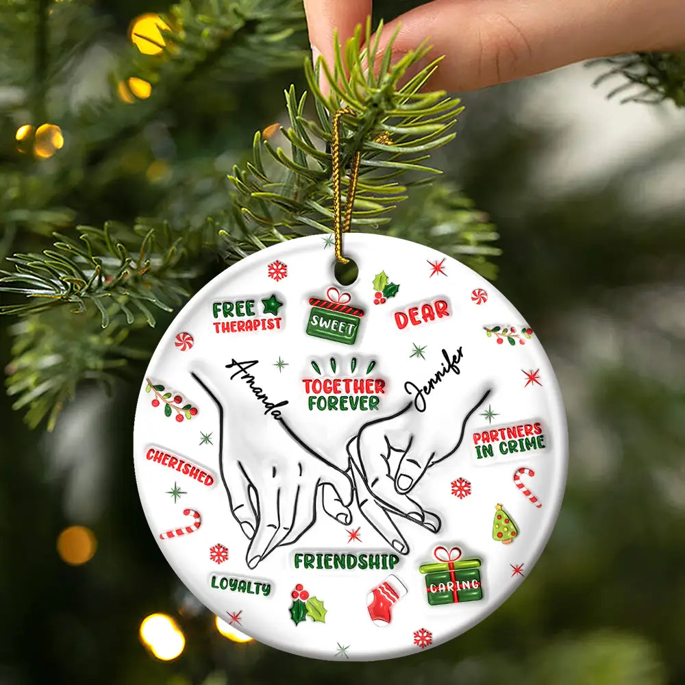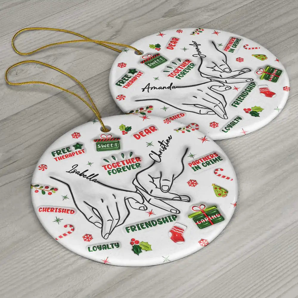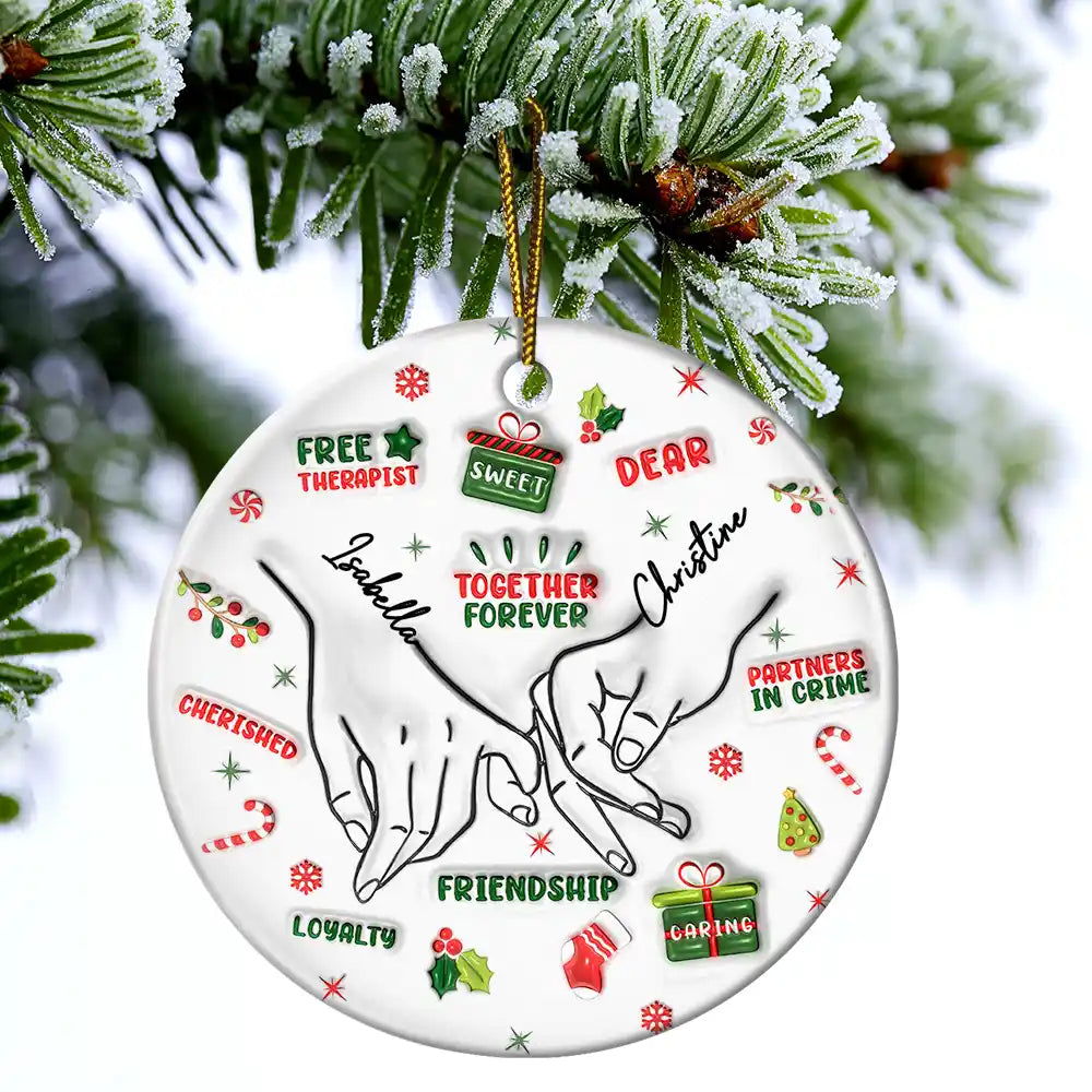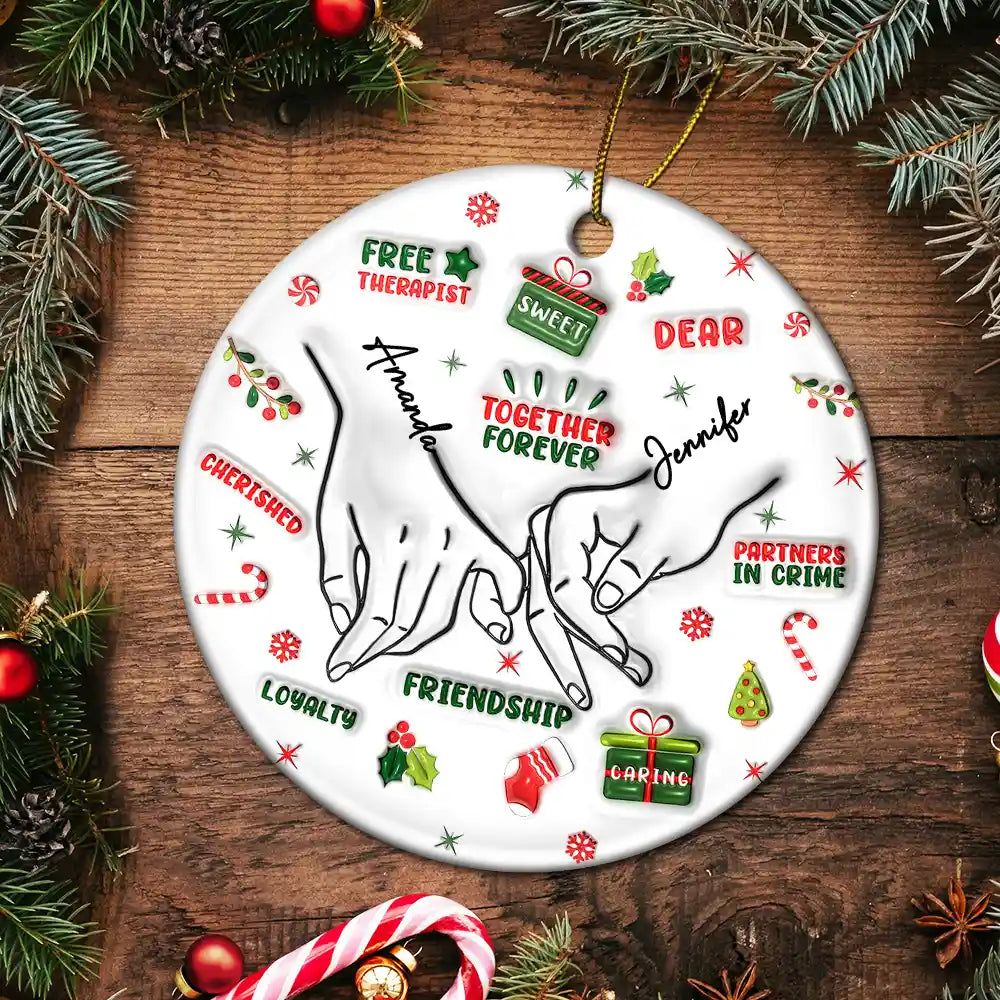 Christmas Besties Holding Hands Our Friendship Is The Greatest Gift - 3D Inflated Effect Printed Ornament, Personalized Circle Acrylic Ornament
