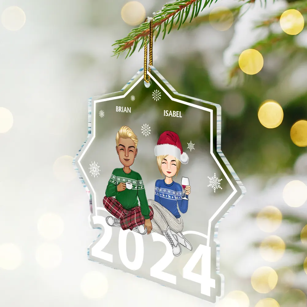 Christmas Cartoon Style 2024 Family Siblings - Personalized Custom Shaped Acrylic Ornament