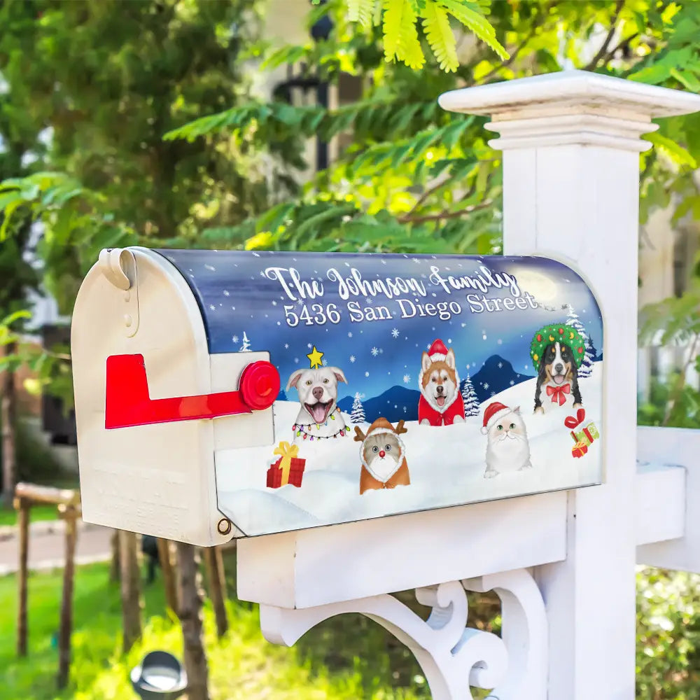 Christmas Dogs Cats Pets - Personalized Mailbox Cover