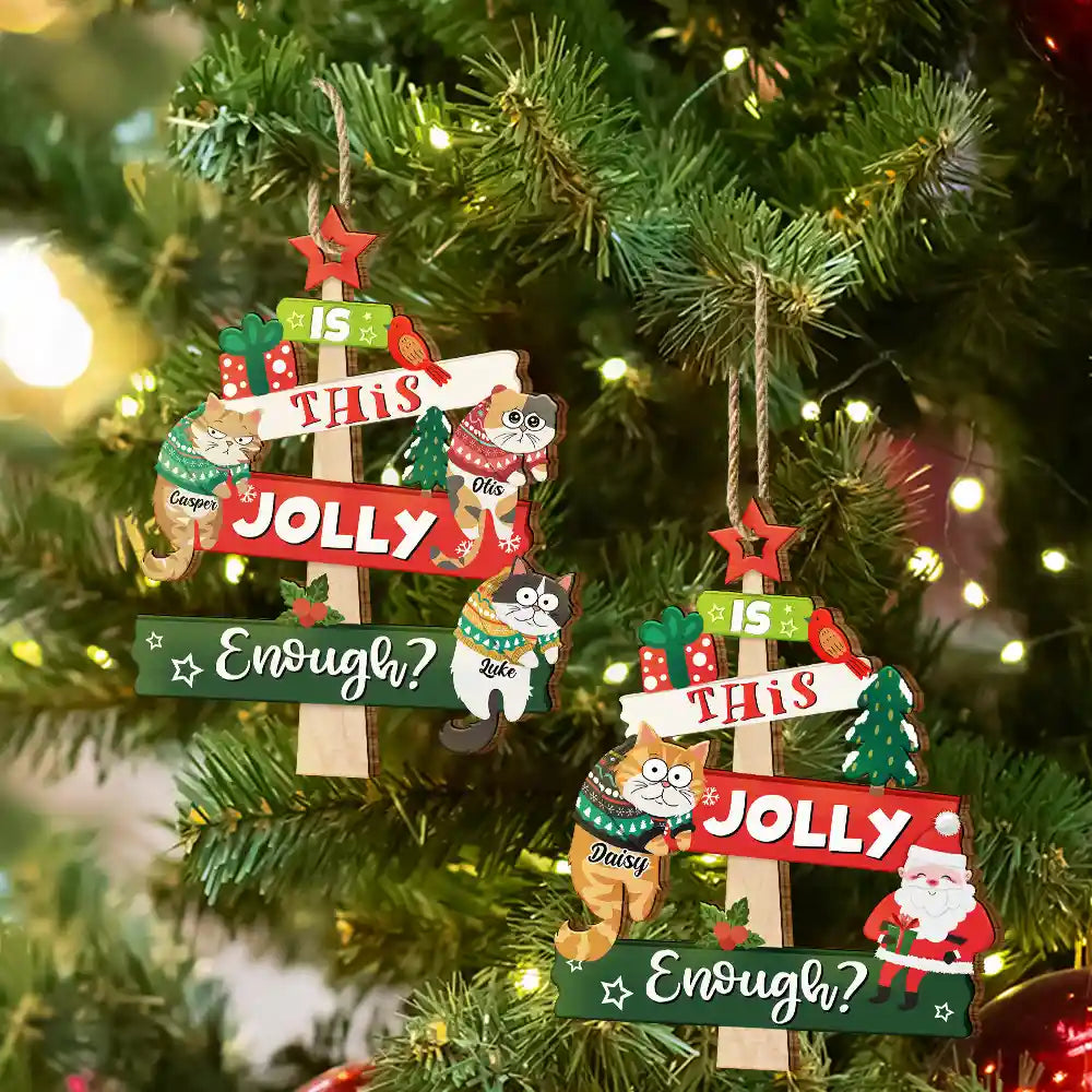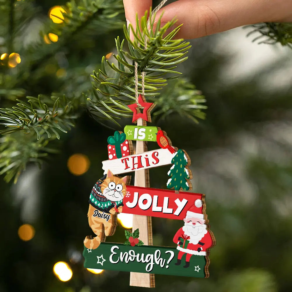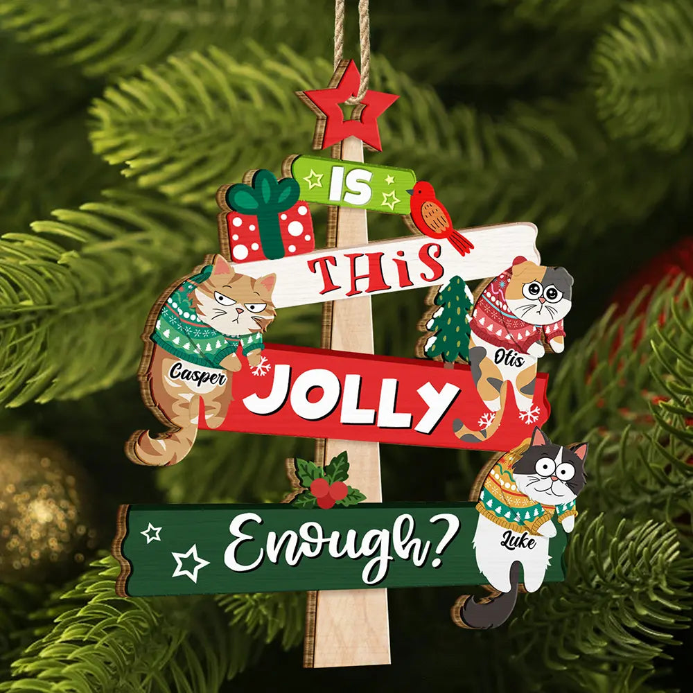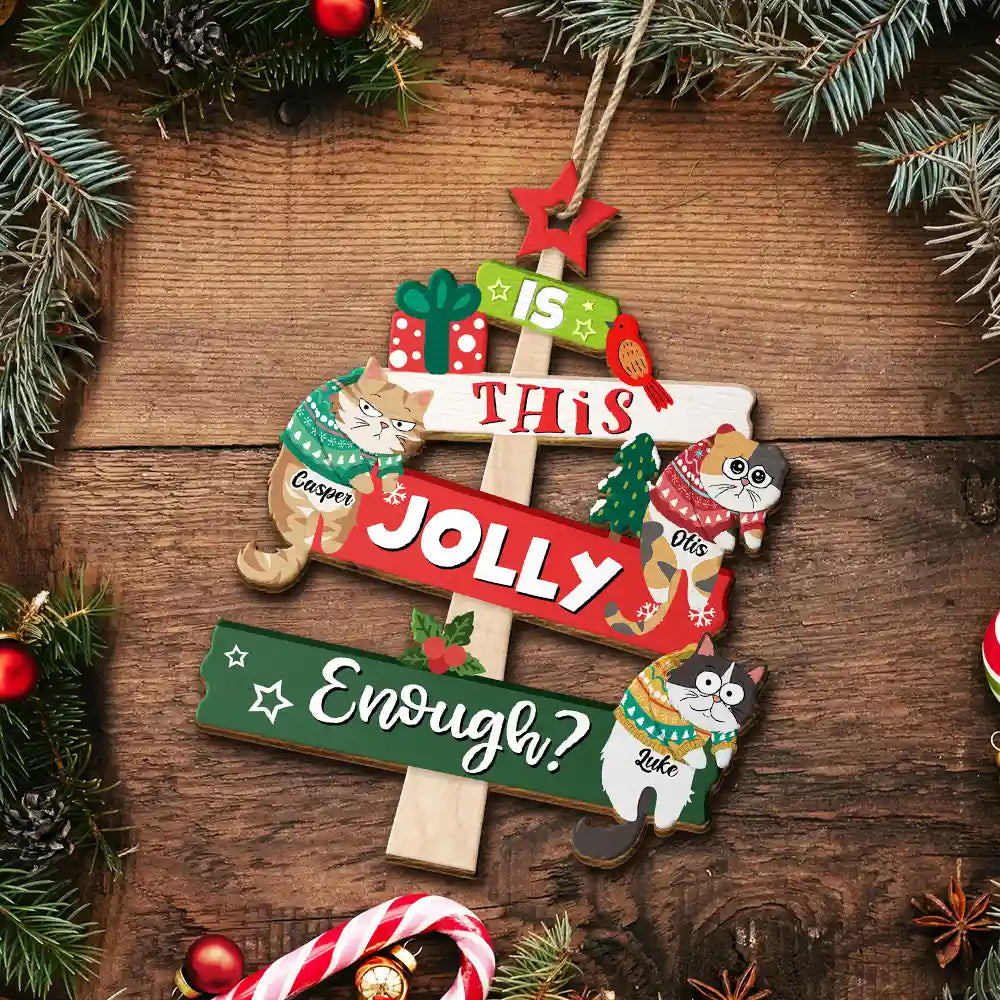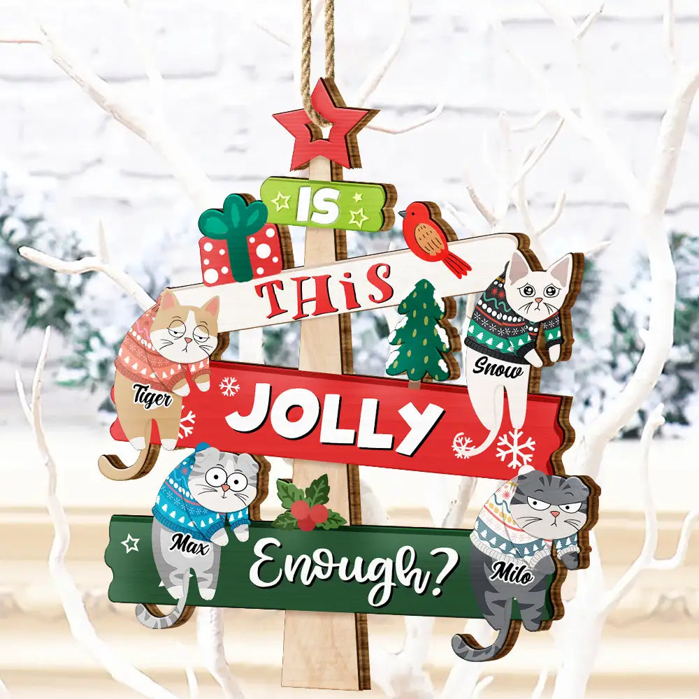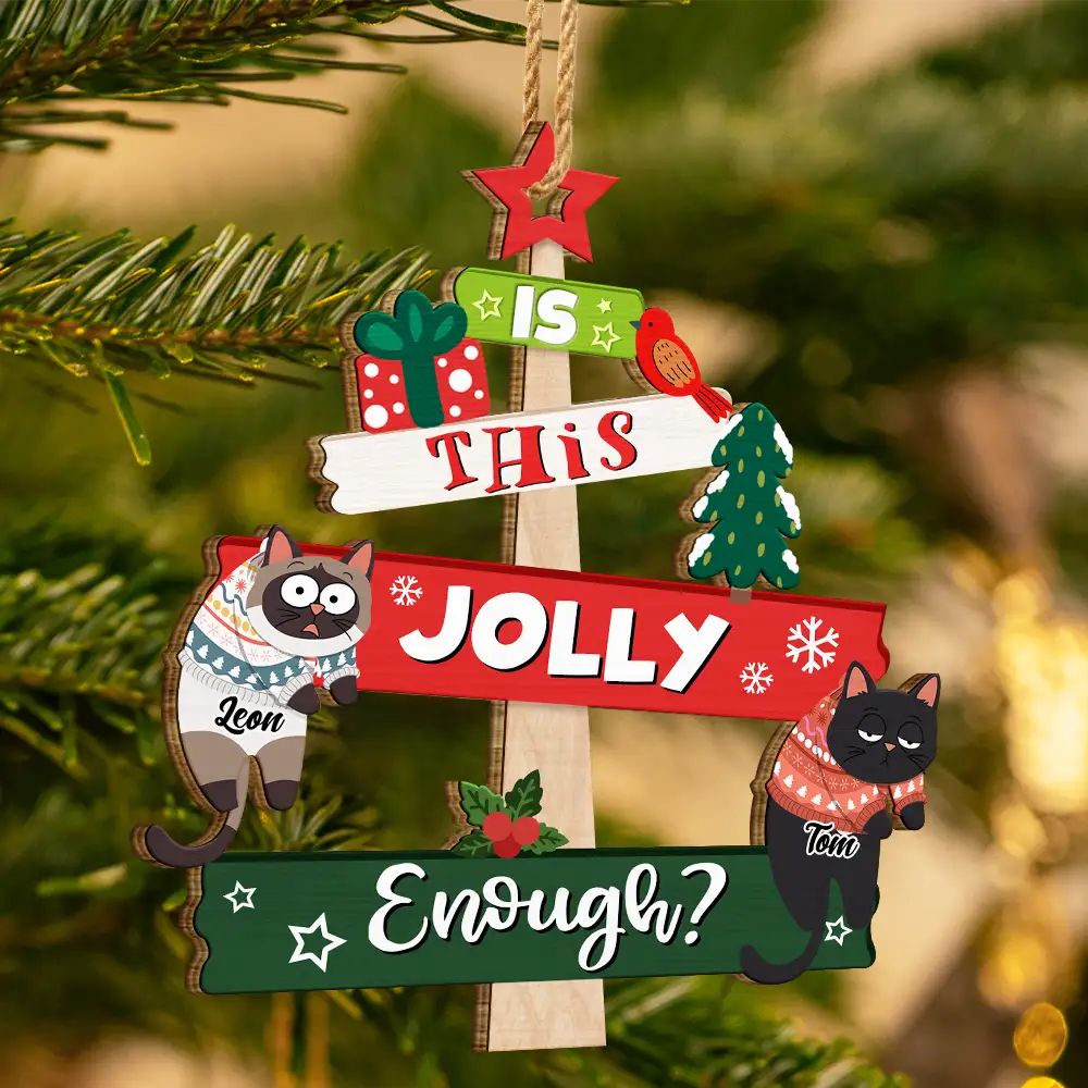 Christmas Hanging Cats Is This Jolly Enough - Personalized Wooden Cutout Ornament