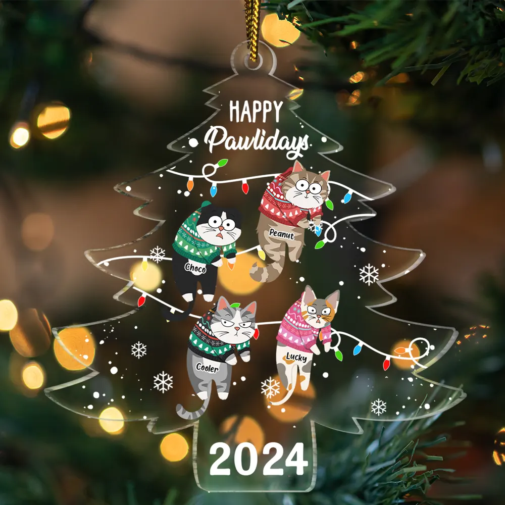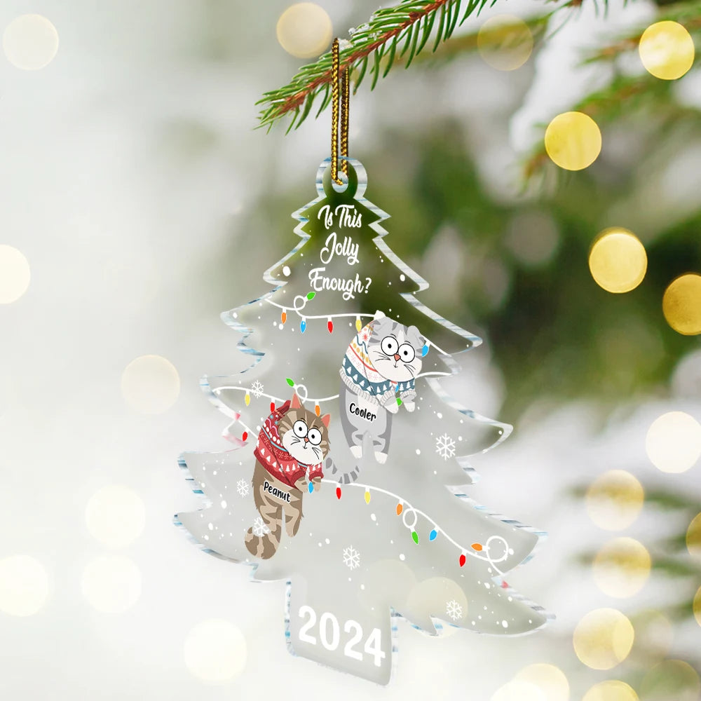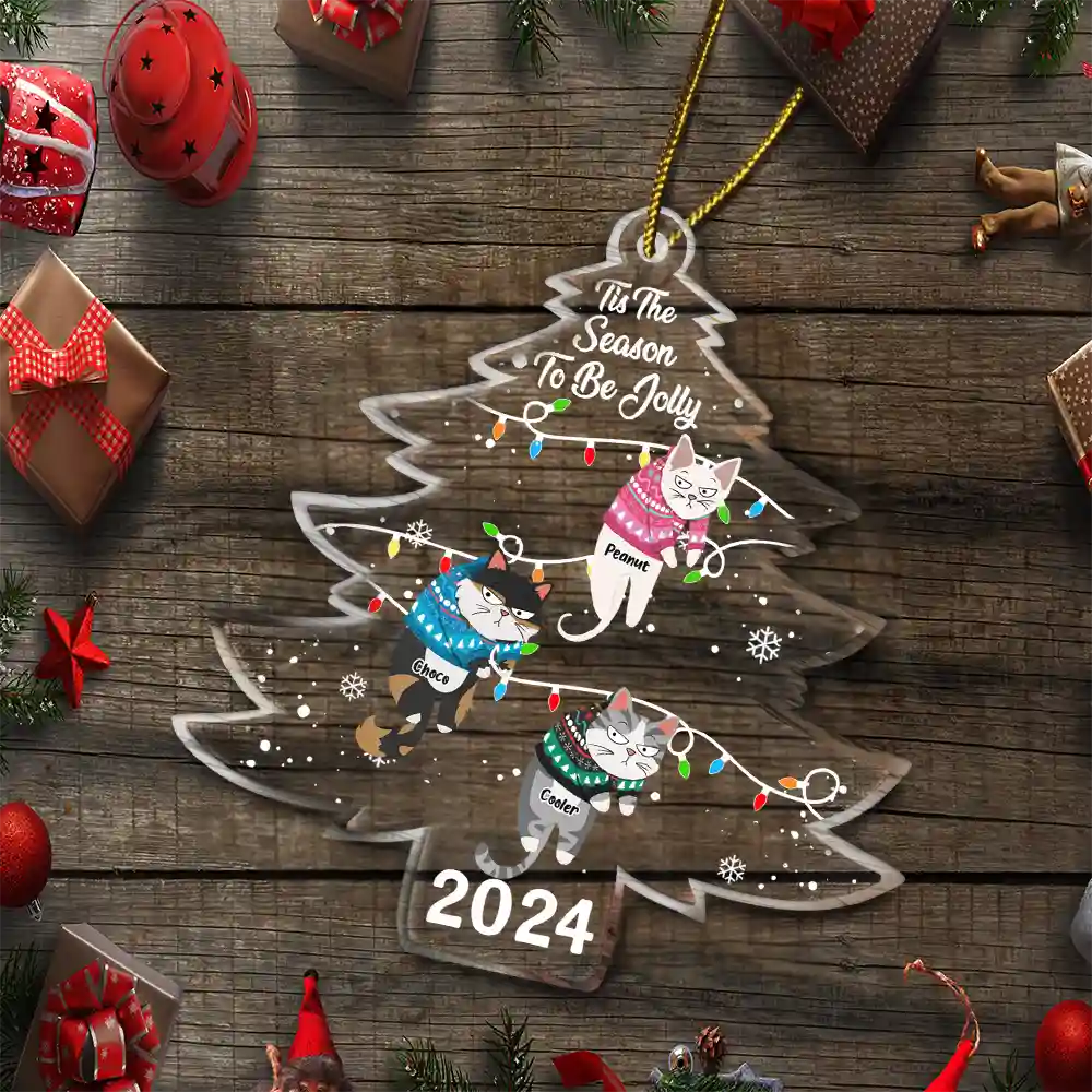 Christmas Hanging Cats Tis The Season To Be Jolly - Personalized Custom Shaped Acrylic Ornament