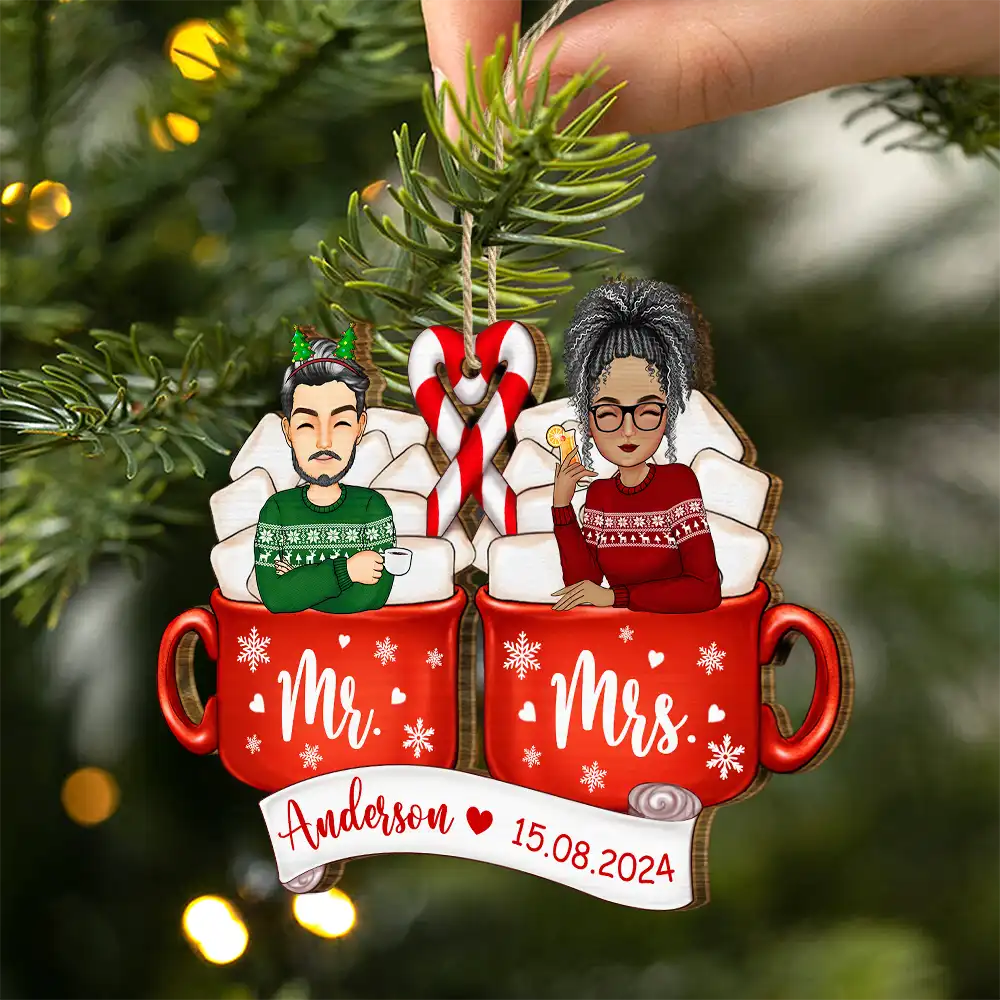 Christmas Husband And Wife Together - Personalized Wooden Cutout Ornament