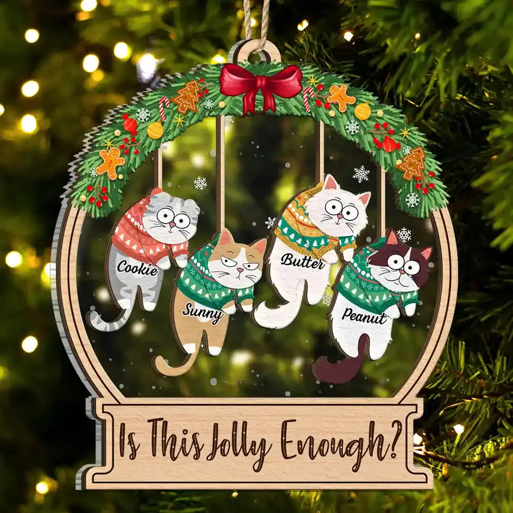 Christmas Is This Jolly Enough Hanging Cats - Personalized 2-Layered Mix Ornament Ornament The Next Custom Gift