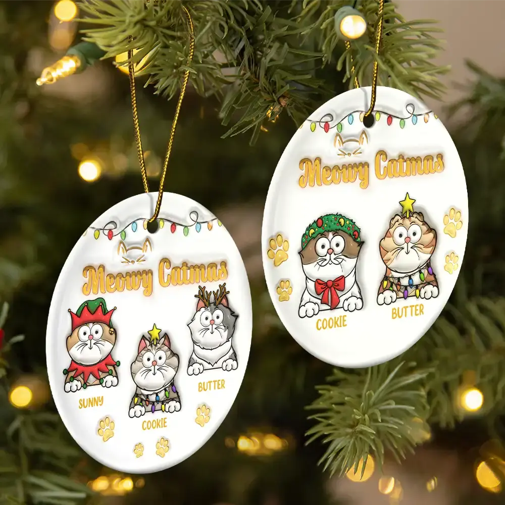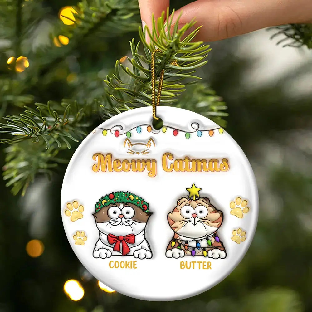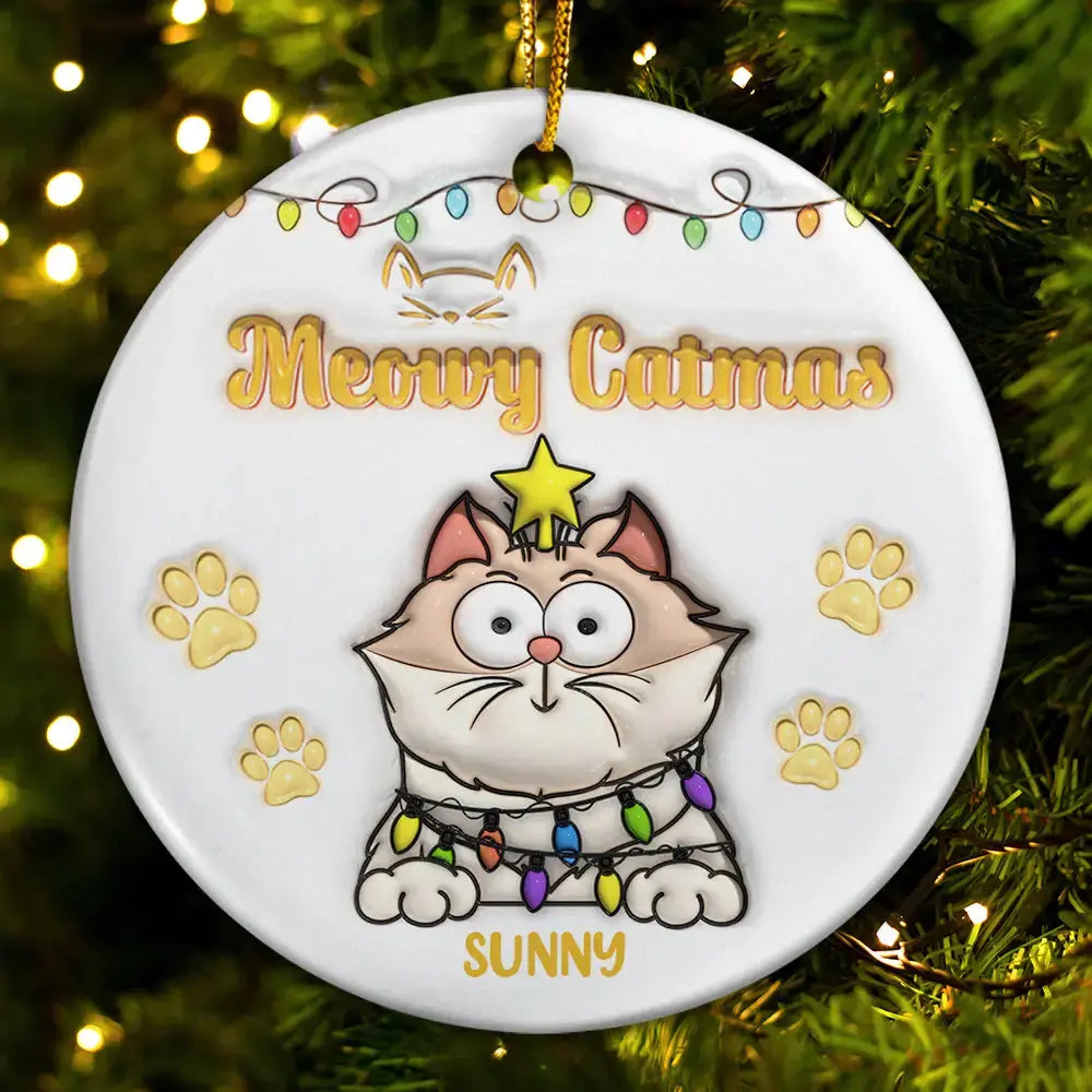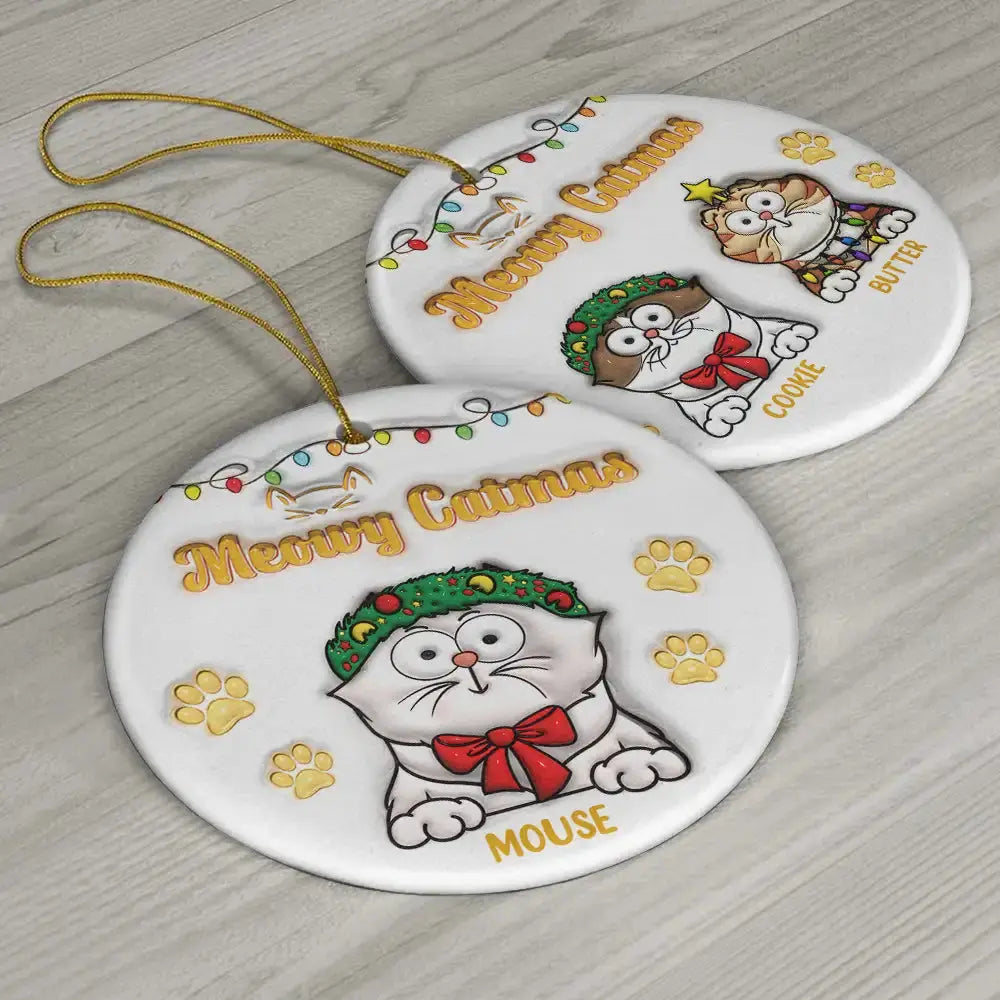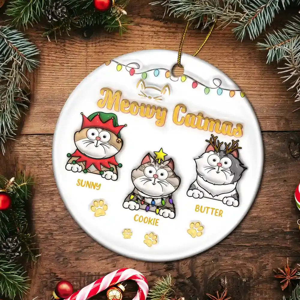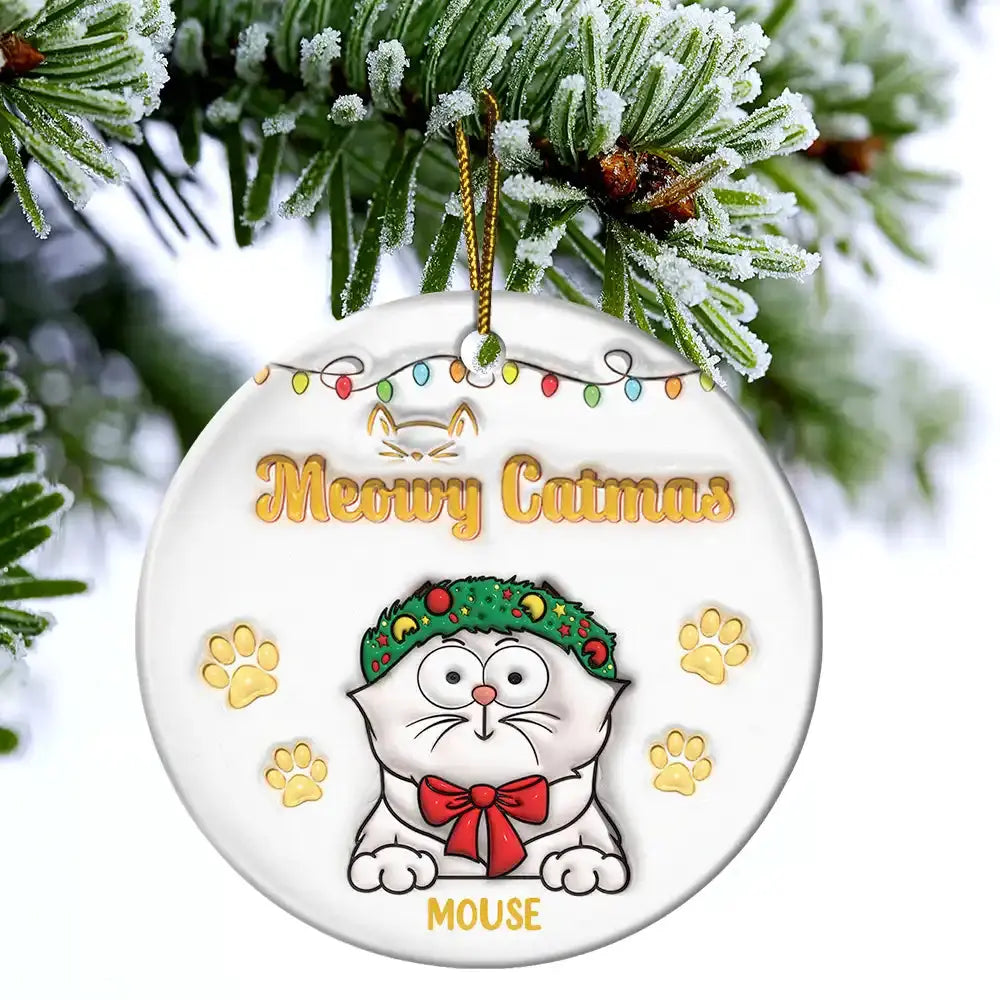 Christmas Meowy Catmas - 3D Inflated Effect Printed Ornament, Personalized Circle Ceramic Ornament ornament The Next Custom Gift