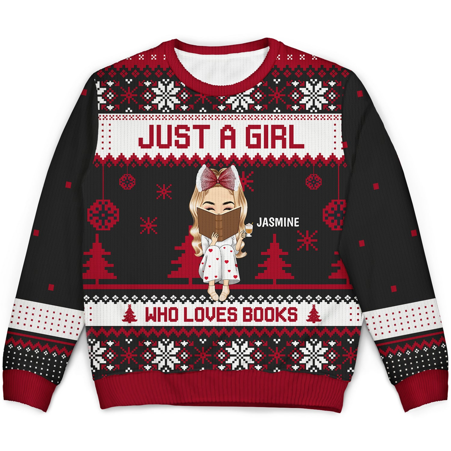 Christmas Reading Just A Girl Who Loves Books - Gift For Book Lovers - Personalized Unisex Ugly Sweater