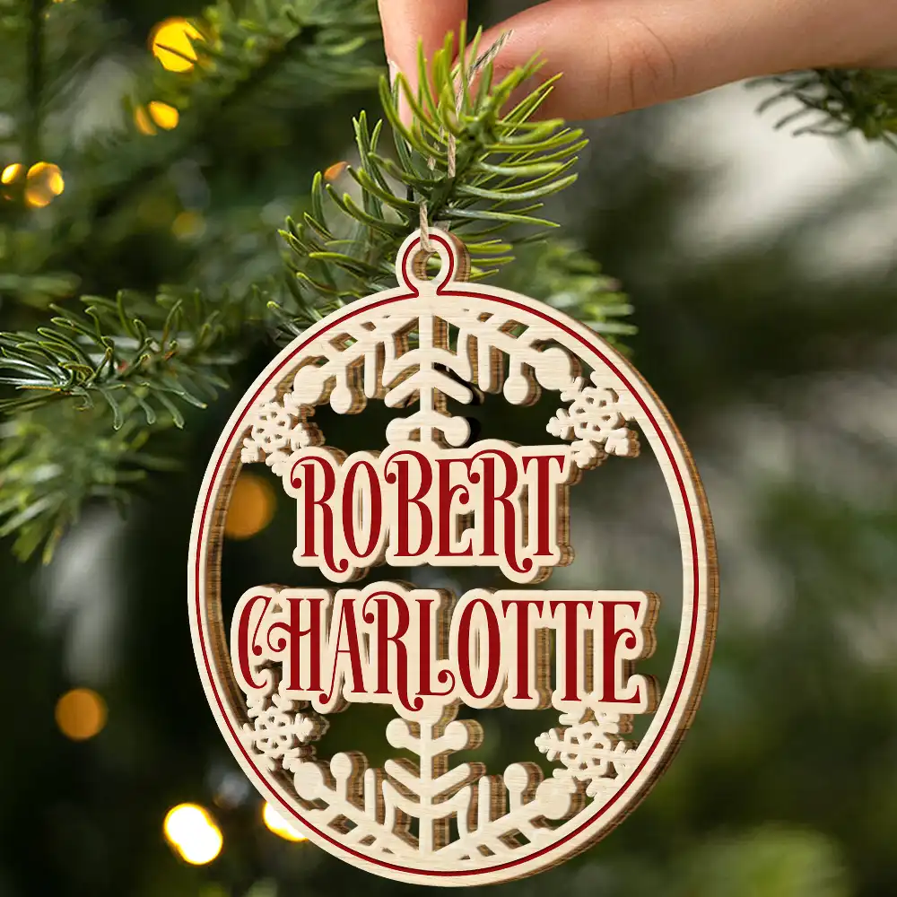 Christmas Snowflake Bauble Family And Friends Custom Name - Personalized Wooden Cutout Ornament