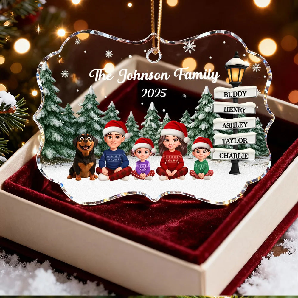 Christmas Snowy Sign Posts Beautiful Family Together - Personalized Acrylic Ornament - Gift For Family