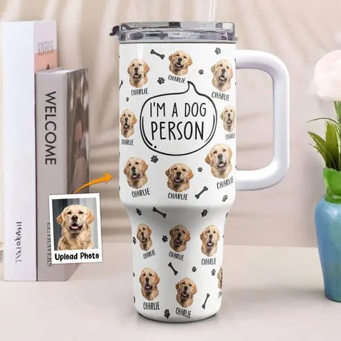 Sip in style with the 'I'm A Dog Person' Personalized Photo 40oz Tumbler! Cherish your furry friend's adorable face on this high-quality tumbler, ensuring every drink is as delightful as your dog's company. Stay hydrated in personalized fashion, and let your love for dogs shine with each refreshing sip. It's not just a tumbler; it's a purr-sonalized experience!