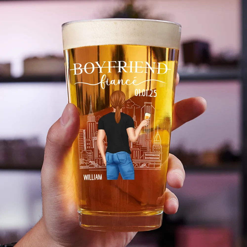Celebrate love and commitment with the "Couple Boyfriend Fiance Girlfriend Fiancee - Personalized Combo Wine & Beer Glass." This delightful set is the perfect gift for couples, whether newly engaged or happily married. Each glass is personalized with thoughtful details, creating a unique and meaningful keepsake that reflects your special bond.