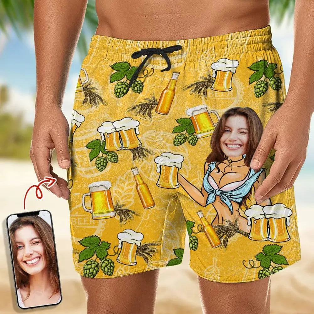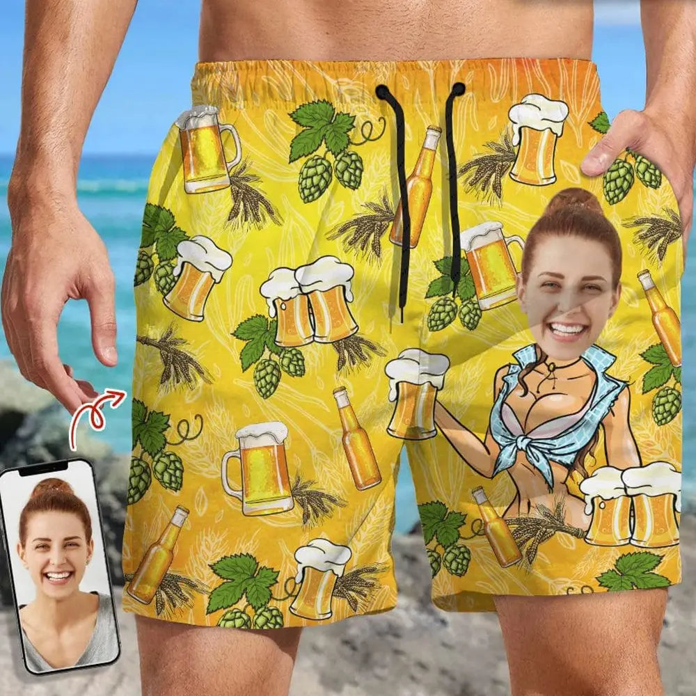 Couple - Custom Face Beer - Personalized Beach Short Beach Short The Next Custom Gift