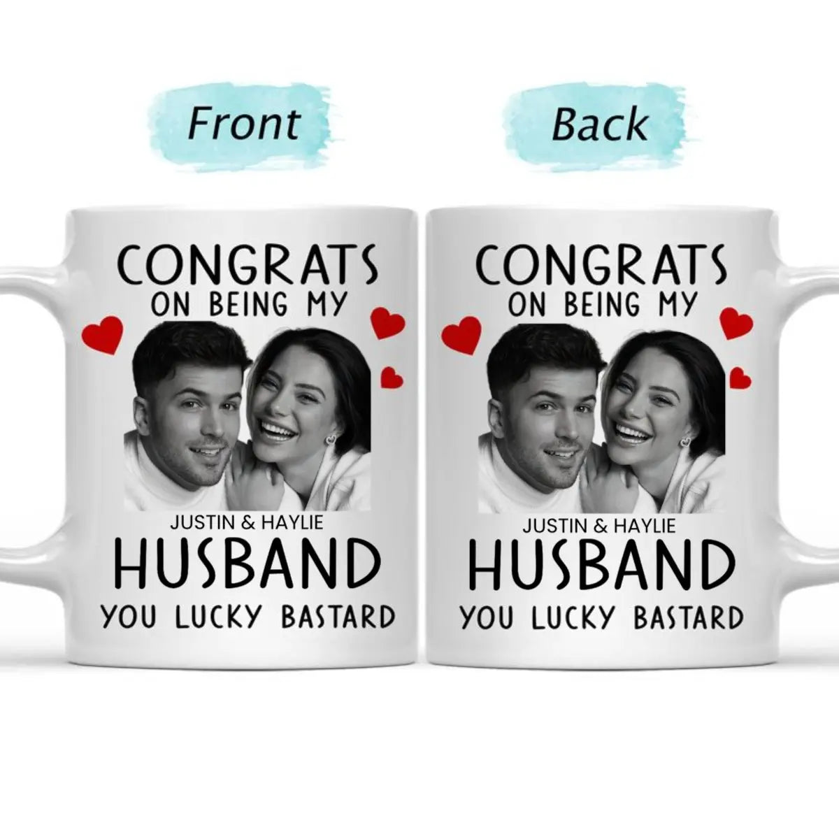 Couple - Custom Photo Congrats On Being My Husband - Personalized Mug