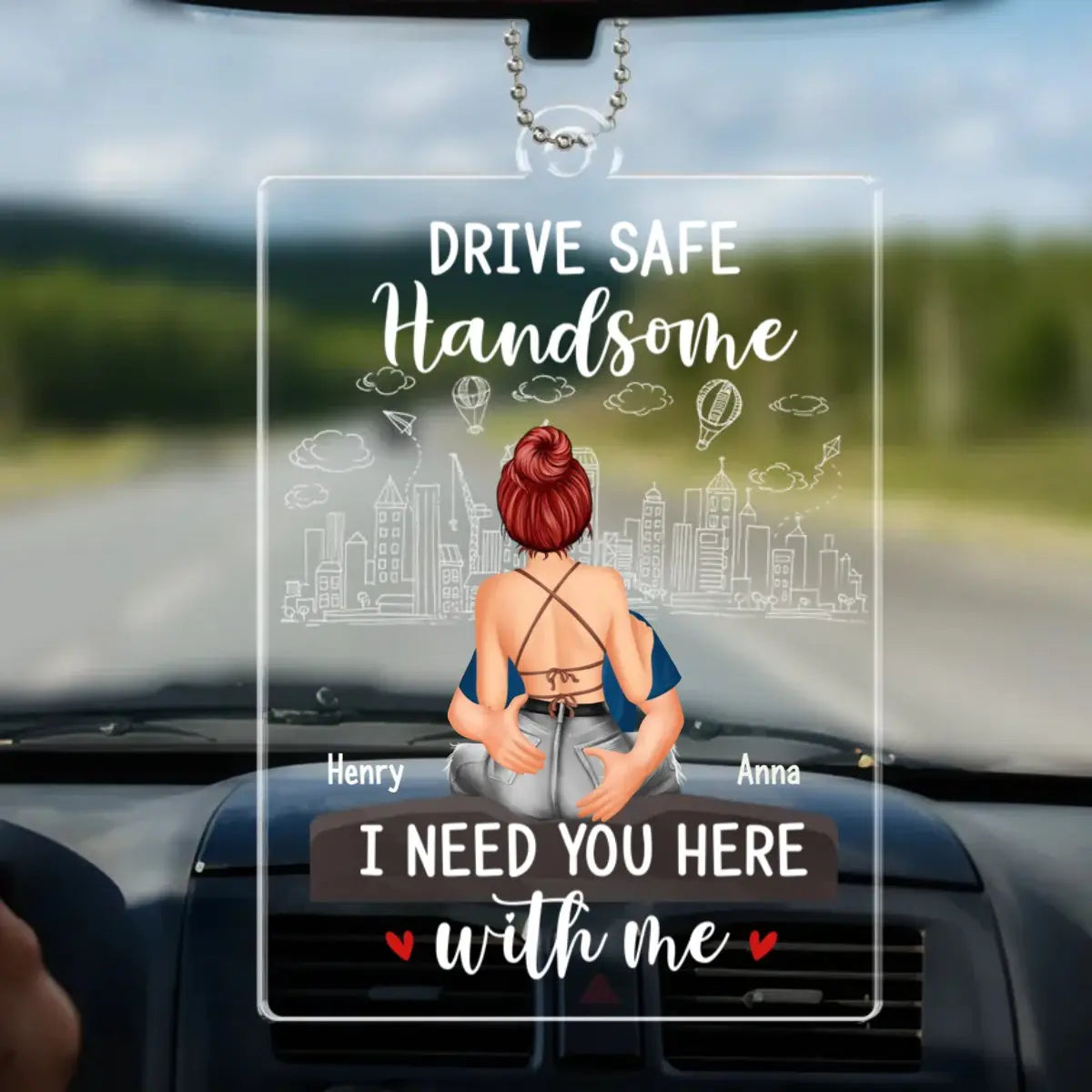 Couple - Drive Safe Handsome I Need You Here With Me - Personalized Acrylic Custom Shaped Car Hanger Acrylic Car Hanger The Next Custom Gift
