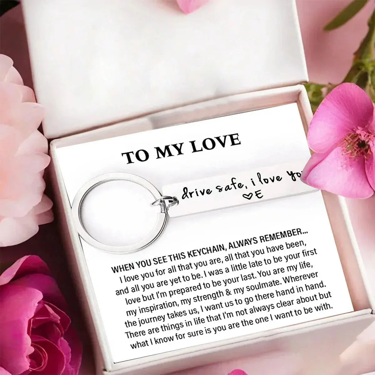Drive Safe I Love You - Personalized Initial Keychain Stainless Steel Keychain The Next Custom Gift