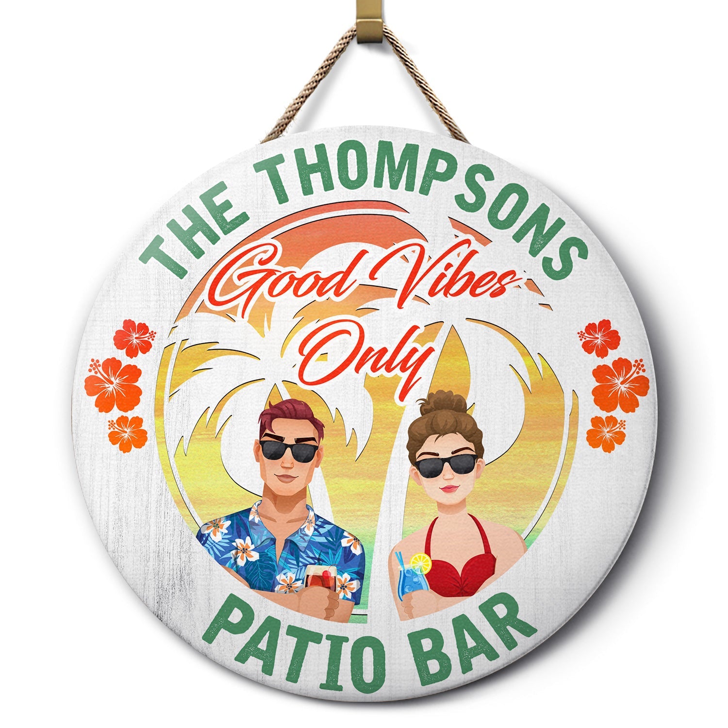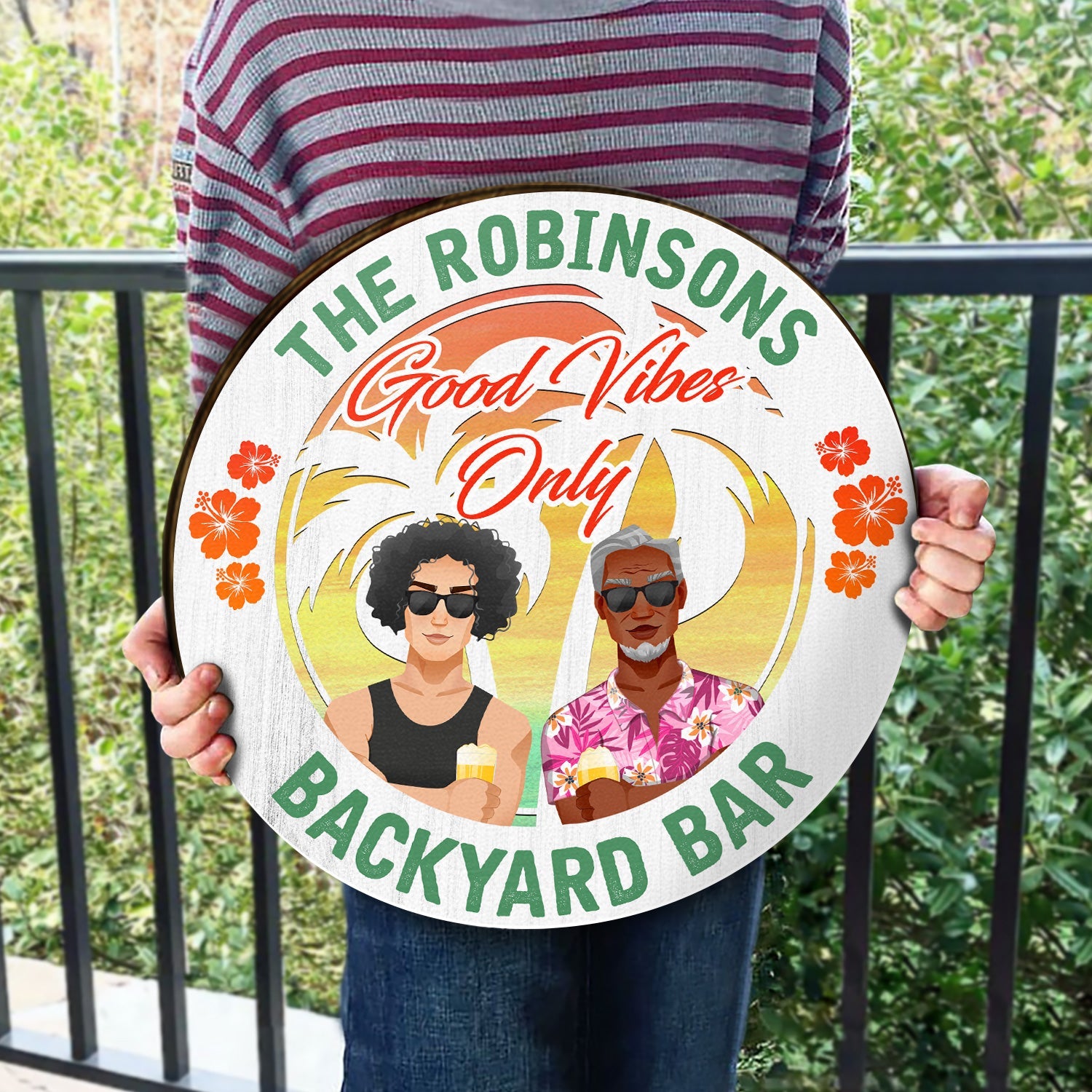 Couple Good Vibes Only - Home Decor For Patio, Pool, Hot Tub, Deck, Bar - Personalized Wood Circle Sign