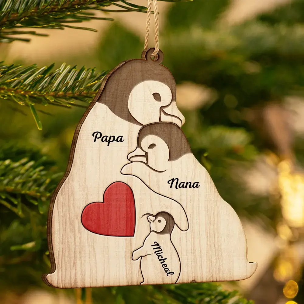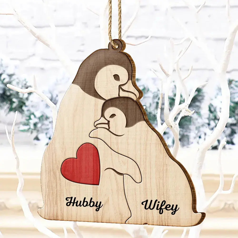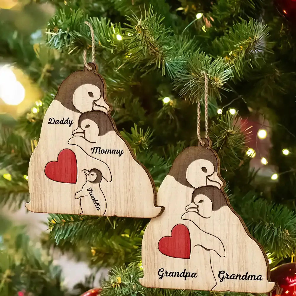 Couple Penguin Family Parents & Kids - Personalized Custom Shaped Wooden Ornament Ornament The Next Custom Gift