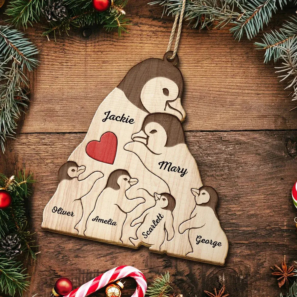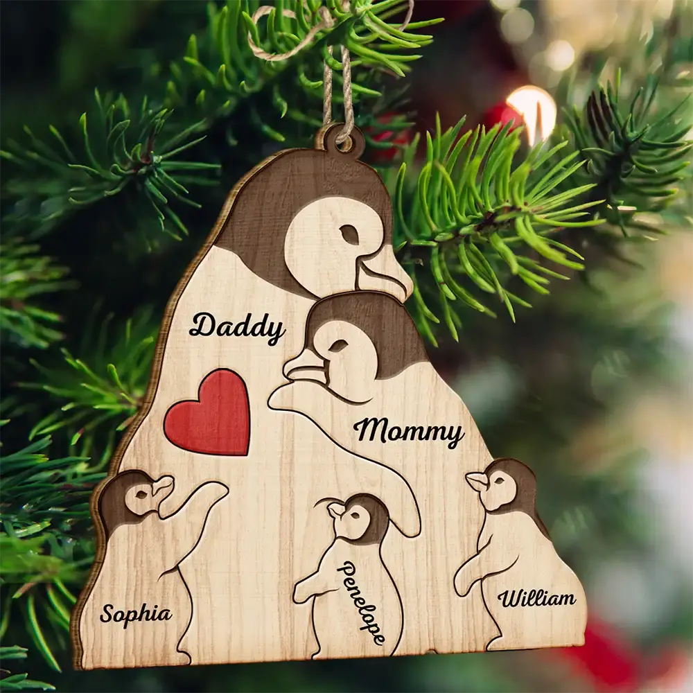 Couple Penguin Family Parents & Kids - Personalized Custom Shaped Wooden Ornament