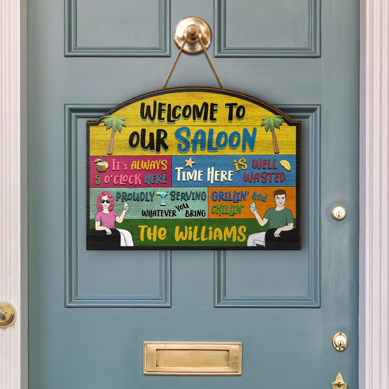 Message: "Welcome to our ... Proudly serving whatever you bring. It's always 5 o'clock here. Time here is well wasted. Grillin' & Chillin".