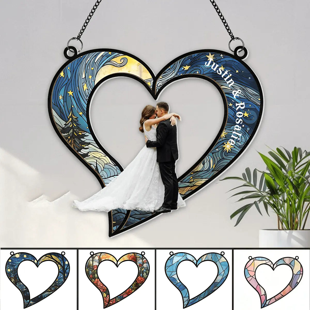 Couples Heart Love Anniversary Gifts - Personalized Photo Window Hanging Suncatcher Ornament