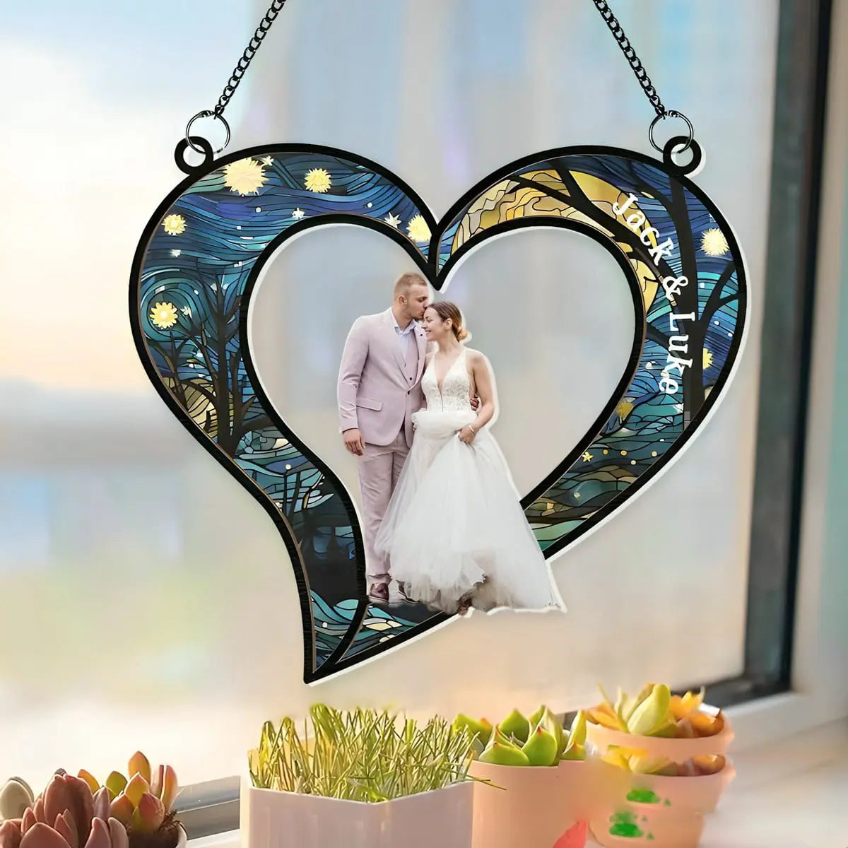 Couples Heart Love Anniversary Gifts - Personalized Photo Window Hanging Suncatcher Ornament Hanging Suncatcher Ornament The Next Custom Gift