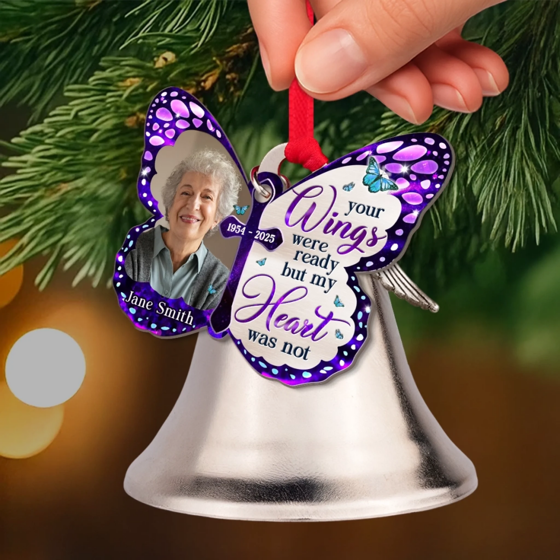 Custom Photo Bell Ornament With Charms - Personalized Memorial Sympathy Gifts For Loss Of Mom, Dad - Your Wings Were Ready But My Heart Was Not