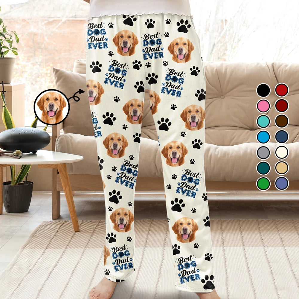 Custom Photo Best Dog Dad Dog Mom - Personalized Pajama Pants