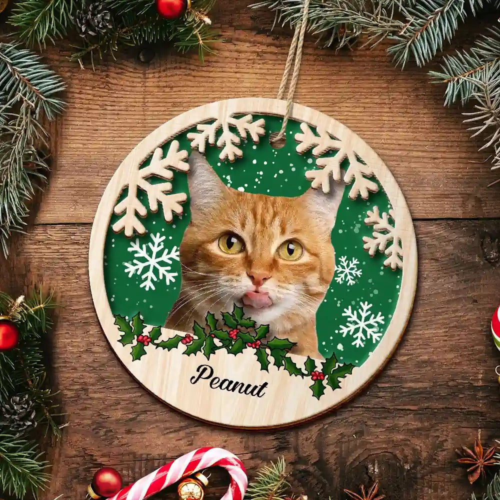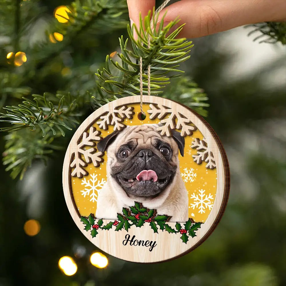 Custom Photo Cat Dog Christmas - Personalized 2-Layered Wooden Ornament