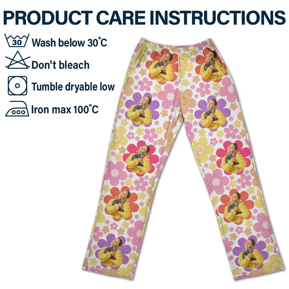 Designed with custom photos of loved ones or pets, these pajama pants offer a personalized touch that makes lounging at home even more enjoyable. Featuring a comfortable fit and soft fabric, they are ideal for cozy evenings or relaxing weekends. Each pair of pants is uniquely crafted to showcase your favorite faces, adding a delightful and joyful element to your relaxation time.